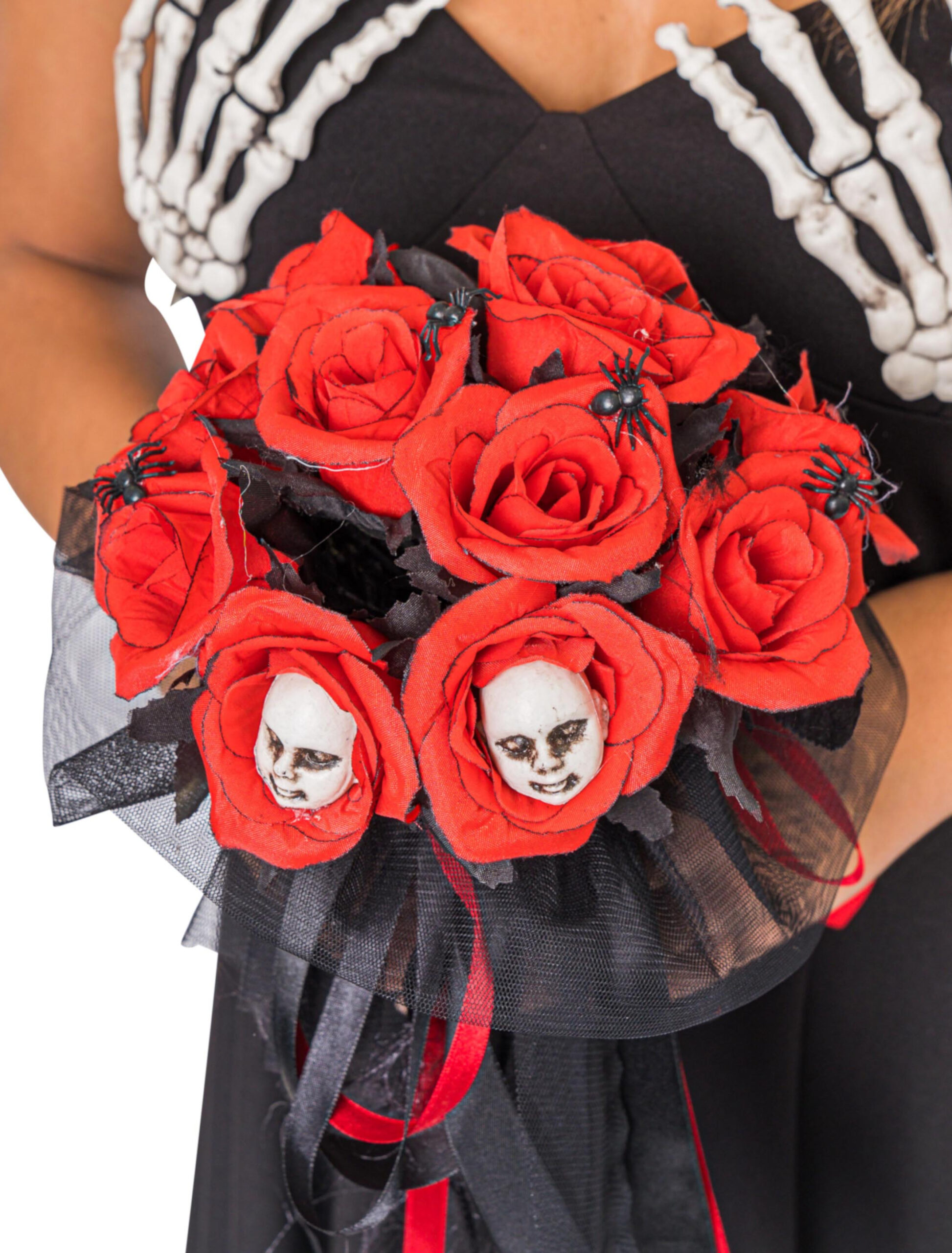 Du möchtest an Halloween oder Karneval gern eine schwarze Braut, ein Vampir oder eine Untote sein und suchst noch nach einem besonderen Accessoire? Dieser schöne rote Blumenstrauß mit schwarzen Spinnen und mehreren eingearbeiteten Babyköpfen machen Deinen Auftritt besonders. Der Strauß eignet sich ebenfalls als Dekoartikel auf Deiner nächsten Halloween Party oder auch als ausgefallenes Geschenk.