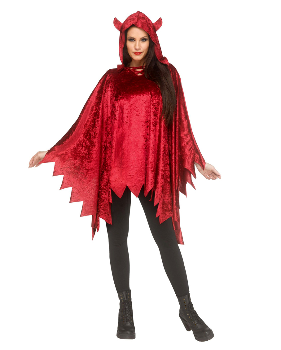 Roter Teufelsponcho & Kapuze aus Samt