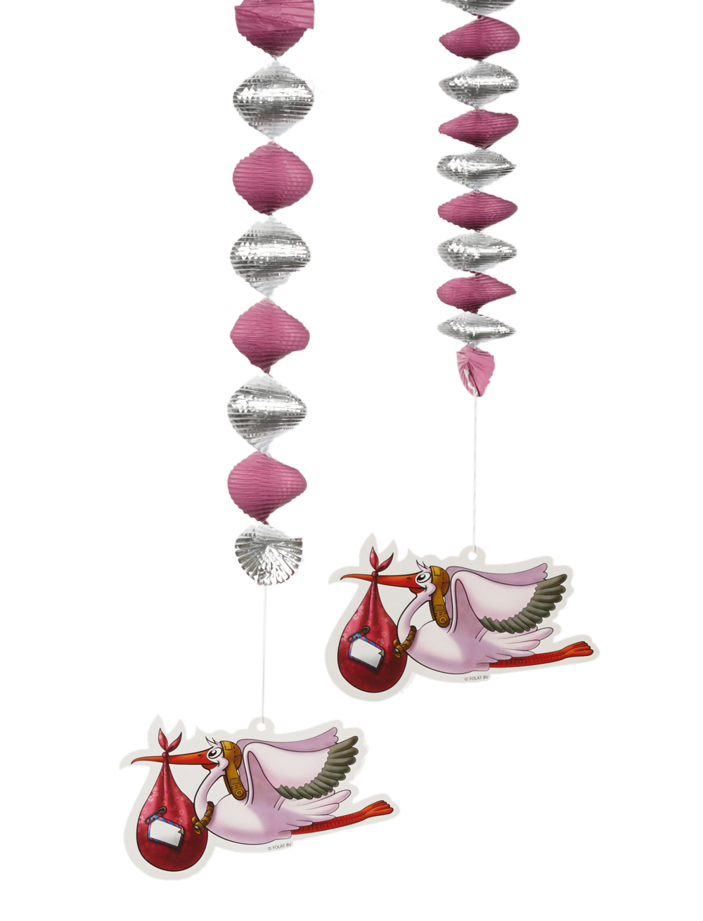 Die originellen 3er Rotorspiralen Geburt Mädchen mit der zeitlos schicken Faltoptik kommen im Dreierpack und eignen sich perfekt als Deko für jede Babyparty. Das wechselreiche Spiel von zartem Altrosa und glitzerndem Silber sorgt für den femininen Touch und lassen im Wirbel der Farben jedes Zimmer erstrahlen! Die niedlichen Anhänger mit dem kleinen Storch und seinem geheimnisvollen Päckchen sind das verspielte Highlight der 3er Rotorspiralen Geburt Mädchen. Durch die praktische Aufhängung und den federleichten Aufbau hält dieses Accessoire problemlos an jeder Decke. Mit diesem Must-Have wird die Feier zum freudigen Ereignis garantiert zum unvergesslichen Erlebnis.