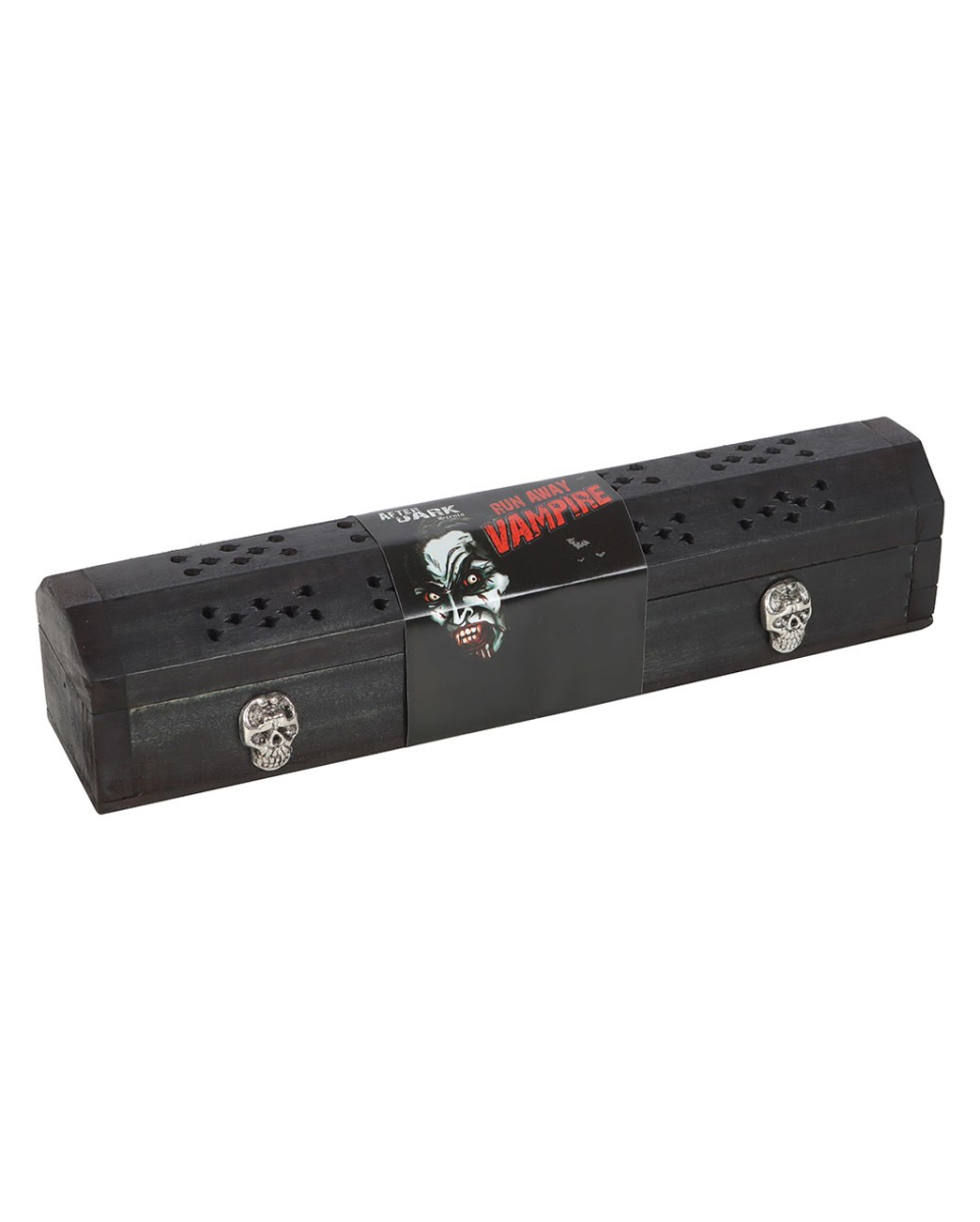 ",Run Away Vampire", 10 Räuchertstäbchen und Holzbox als Set Sandelholz Duft als Schutzschild gegen Kreaturen der Nacht Wenn der silberne Mond den Nachthimmel erleuchtet und dunkle Ecken zu flüstern beginnen, bringt das Run Away Vampire Räucherstäbchen-Set eine beruhigende Essenz von Sandelholz in dein Heim. Dieser Duft, warm wie ein Kaminfeuer, schafft nicht nur eine Oase der Ruhe für deine Seele, sondern wirkt auch als unsichtbarer Bannkreis gegen nachtaktive Schrecken. Das ",Run Away Vampire", 10 Räuchertstäbchen und Holzbox als Set enthält 10 hochwertige Sandelholz-Räucherstäbchen, deren intensiver, warmer Duft für Entspannung sorgt und dabei schützende Energien entfaltet. Die edle Holzbox ist mit kunstvollen silbernen Totenköpfen verziert und dient sowohl als Halter als auch als sichere Aufbewahrung. Lieferumfang: 1 x ",Run Away Vampire", 10 Räuchertstäbchen und Holzbox als Set Inhalt: 10 x Räucherstäbchen, 1 x Box Farbe: Schwarz, Rot, Ocker, Beige Gewicht: 310 g Duft: Sandelholz Größe: ca. 31 x 6,6 x 6 cm Material: Räucherstäbchen, Holz Warme, erdig riechende Räucherstäbchen mit extravaganter Holzbox als Set Der Duft von Sandelholz schützt dich und Anwesende von Vampiren und blutsaugende Kreaturen der Nacht Mit silbernen Totenköpfen verzierte Holzbox, die als Räucherstäbchenhalter und Aufbewahrungsbox dient Ein perfektes Set, um deinem Lieblingsort im Dunkeln einen Hauch von Spannung zu verleihen