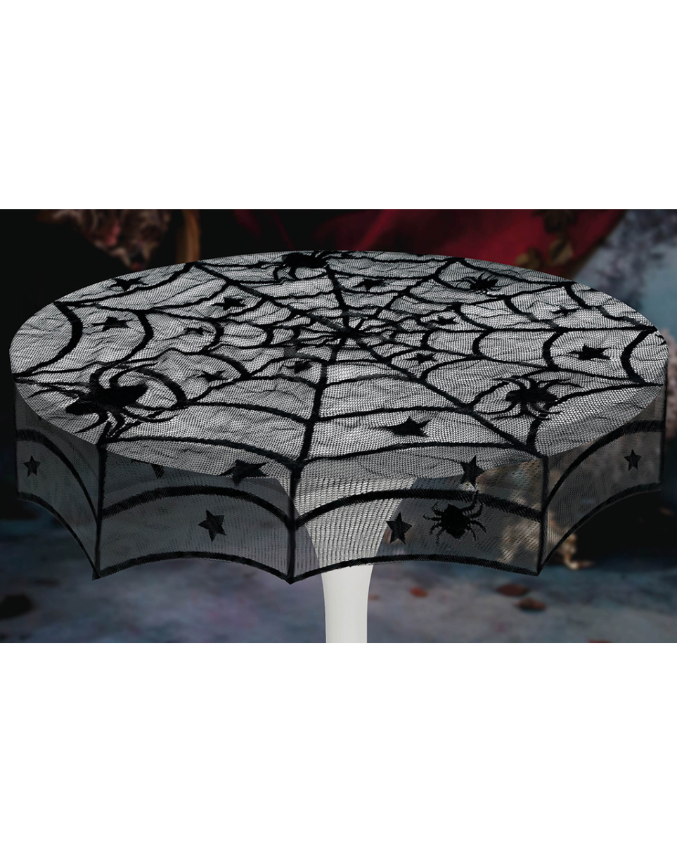 Runde Spinnennetz Spitzen Tischdecke für Halloween 100cm Elegante Halloween Tischdecke aus schwarzem Spitzenstoff Mit der runden Spinnennetz Spitzen Tischdecke verwandelst du jede Halloween Tafel in eine geheimnisvolle Szenerie, die das Herz von Halloween-Fans höher schlagen lässt. Die filigranen Spinnen und Sterne sind ein echter Blickfang, der für Gänsehaut sorgt! Die runde Spinnennetz Spitzen Tischdecke hat einen Durchmesser von ca. 100 cm. Gefertigt aus 100% Polyester, ist sie nicht nur robust, sondern auch pflegeleicht und immer wiederzuverwenden. Lieferumfang: 1 x Runde Spinnennetz Spitzen Tischdecke 100cm Farbe: Schwarz Größe: Durchmesser ca. 100 cm Material: 100% Polyester Stimmungsvolle Dekoration für deine Halloween Tafel Extravagante Halloween Homeware Runde Tischdecke mit Spinnweben Motiv, Spinnen und Sterne Mystische Spinnen Dekoration für Halloween Immer wiederzuverwenden Nicht waschbar