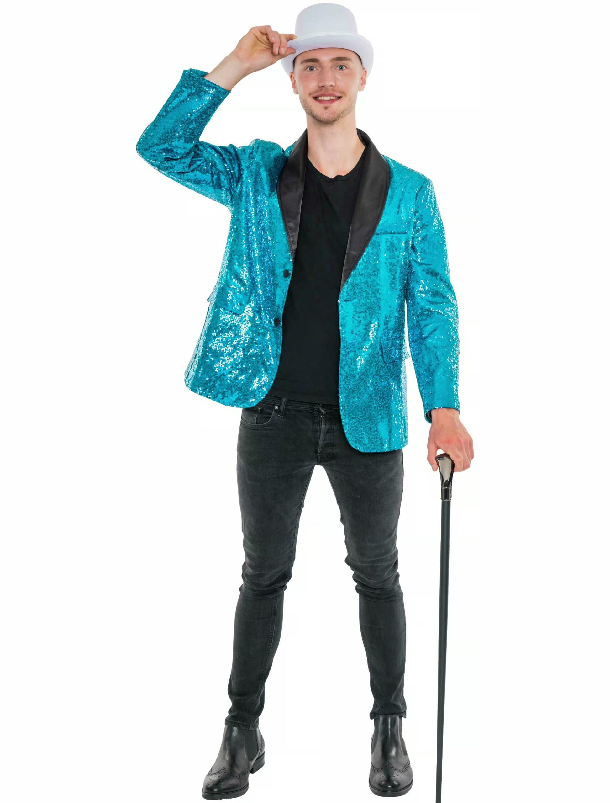 Du willst die Party rocken, als wärst du der DJ und der VIP gleichzeitig? Dann ist unser Herren Sakko mit Pailletten genau das, was du brauchst! Damit wirst du zum Glanzstück der Nacht – und das nicht nur, weil du endlich den perfekten Mix aus cool und extravagant gefunden hast, sondern weil die Pailletten so richtig ins Auge stechen! Egal ob auf der Tanzfläche, auf der Bühne oder einfach bei deinem nächsten großen Auftritt – dieses Sakko macht dich zum Mittelpunkt jeder Feier. Du wirst nicht nur glänzen, sondern regelrecht strahlen! Dreh die Musik auf und lass die Pailletten für dich sprechen!