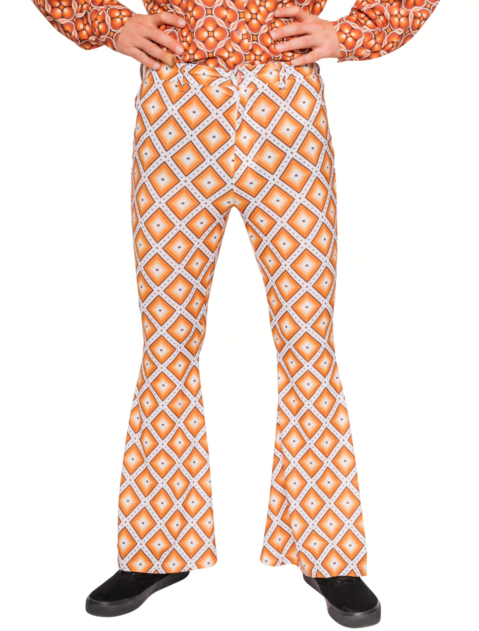 Mit dieser Retro-Hose in Beige-Braun düst Du im Sauseschritt direkt in die angesagten 70er. Die bequeme Schlaghose ist vorne über eine Reißverschlussleiste zu schließen. Passend dazu gibt es in unserem Shop das entsprechende Retro-Hemd. Mit diesem Outfit machst Du den buntesten Discogängern der 70er Konkurrenz. Die weite Schlaghose mit Hemd kannst Du also nicht nur auf der nächsten Kostümparty ausführen, sondern auch einen unvergesslichen Discoauftritt hinlegen.