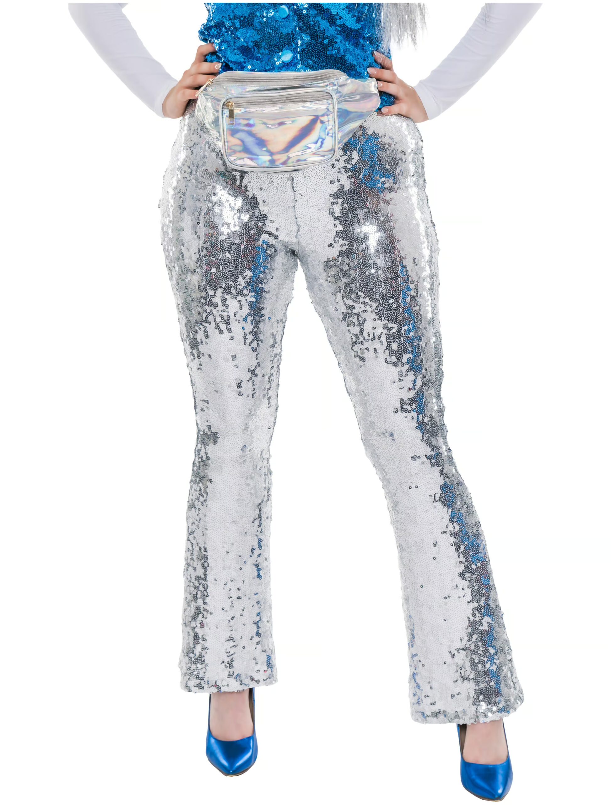 Bereit, die Tanzfläche in ein glitzerndes Spektakel zu verwandeln? Mit unserer Pailletten-Schlaghose wirst du zum leuchtenden Mittelpunkt jeder Party! Sie funkelt, sie schimmert, sie schreit förmlich nach Disco, Festival und ganz großen Auftritten. Die weit ausgestellten Beine sorgen für den perfekten 70s-Vibe, während die Pailletten das Licht einfangen und dich bei jeder Bewegung zum Funkeln bringen. Egal, ob du auf der nächsten Mottoparty den Saturday Night Fever rausholst oder einfach ein Outfit brauchst, das garantiert niemand übersieht – diese Hose macht’s möglich. Mach dich bereit, die Tanzfläche mit Stil und jeder Menge Funkeln zu erobern!