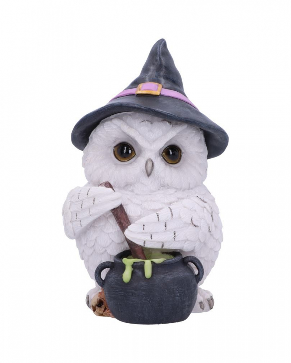Hexen Schneeule mit Hexenkessel als Tischdeko Zauberhafte Hexen-Eule als Mystic Geschenk- und Dekoartikel Die Hexen Schneeule mit Hexenkessel ist eine Dekofigur, deren Charme man sich kaum entziehen kann. Schau dir die niedliche Eule an, wie sie eifrig in ihrem Kessel rührt. Dabei braucht sie sich gar nicht mühen. Allein ihr Anblick ist ja schon zauberhaft. Die Hexen Schneeule mit Hexenkessel ist aus hochwertigem Polyresin gegossen und handbemalt. Die Eule ist weiß und man sieht die einzelnen Federn aufgemalt. Auf dem Kopf trägt sie einen Hexen Hut, vor ihr steht ein Hexenkessel, in dem sie eifrig rührt. Lieferumfang: 1 x Schneeeule mit Hexenkessel Farbe: Weiß, Schwarz, Größe: ca. 17,5 cm Material: Polyresin (Kunststein) Schneeeule mit schwarzem Hexenhut und Hexenkessel Niedliche Halloween Tischdeko und Geschenk Aus Polyresin gegossen Von Hand bemalt Der Artikel ist ein Deko Artikel und kein Spielzeug. Nicht für Kinder unter 3 Jahren geeignet. Kann Kleinteile enthalten, die verschluckt werden können – Erstickungsgefahr. Von Feuer und offenen Flammen fernhalten.