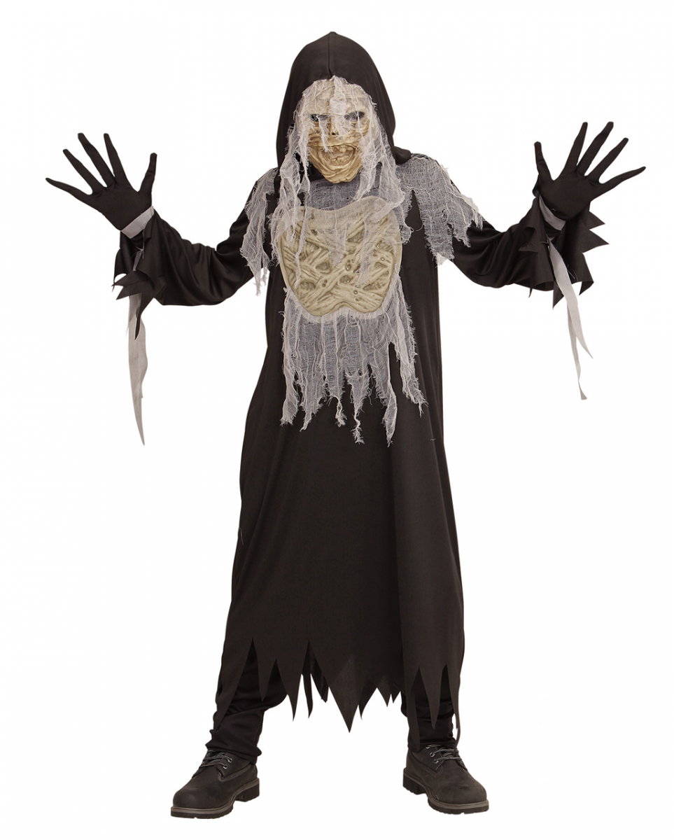 Unheimlicher Mumien Geist Kinderkostüm für Halloween und Fasching Trick or Treat Kostüm einer schaurigen Mumie im Fetzenlook Unser unheimlicher Mumien Geist Kinderkostüm wird deine Nachbarn das Fürchten lehren. Als gruselige Mumie bist du aus deinem Grab auferstanden, um Angst und Schrecken zu verbreiten. Nur mit Bonbons und Schokolade ist der alte Mumien-Geist zu beruhigen. Das unheimlicher Mumien Geist Kinderkostüm besteht aus einer Robe, die in Fetzen hängt, da du ja viele Jahre in einem Grab lagst. Die Handschuhe lassen deine Finger lang und spitz aussehen. Highlight ist die Maske, die ein schauriges Mumiengesicht zeigt. Lieferumfang: 1 x Schrecklicher Mumiengeist Kinderkostüm Inhalt: Robe mit Kapuze, Handschuhe und Maske Farbe: Schwarz, Beige, Grau Größe: S, M, L, XL Material: 100% Polyester, Latex Cooles Halloween Kostüm im Fetzenlook Kapuzenkostüm mit Maske und Handschuhe Für Halloween und Fasching beliebt Nicht für Kinder unter 3 Jahren geeignet. Kann Kleinteile enthalten, die verschluckt werden können – Erstickungsgefahr. Von Feuer und offenen Flammen fernhalten.