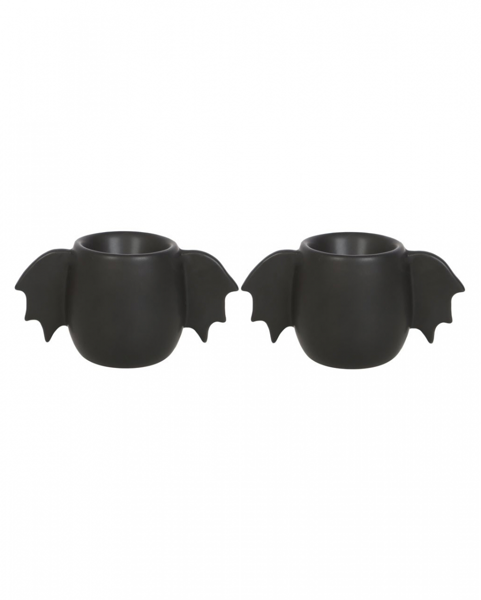 Schwarze Eierbecher mit Fledermaus Flügeln 2 St. Extravagantes Geschirr für Halloween und den düster gedeckten Gothic-Frühstückstisch Du möchtest deiner Frühstückstafel ein schauriges Flair verleihen? Mit unseren schwarzen Eierbechern mit Fledermaus Flügeln wird dein Frühstück zum Augenschmaus! Das Set ist ein stilvolles Geschirr und eine tolle Deko für Halloween und Gothic Events. Die schwarzen Eierbecher mit Fledermaus Flügeln sind aus Keramik und kommen im Set von 2 Stück. Jeder Eierbecher ist ca. 6,5 x 11 x 6,5 cm groß und wiegt ca. 102 g. Die detailgetreue Gestaltung der Fledermausflügel sorgt für einen beeindruckenden Anblick. Lieferumfang: 1 x Schwarze Eierbecher mit Fledermaus Flügeln 2 St. Inhalt: 2 Stück Farbe: Schwarz Größe: jeweils ca. 6,5 x 11 x 6,5 cm Gewicht: jeweils ca. 102 g Material: Keramik Schwarze Eierbecher mit Fledermausflügeln auf der Seite Stilvolles Frühstücksgeschirr für Halloween und Gothic-Fans Wunderbar als Geschenk und zum Selber haben 2 Stück als Set verpackt Die Eierbecher bitte nur von Hand waschen Der Artikel ist ein Gothic Geschirr und kein Spielzeug. Nicht für Kinder unter 3 Jahren geeignet. Kann Kleinteile enthalten, die verschluckt werden können – Erstickungsgefahr. Von Feuer und offenen Flammen fernhalten.