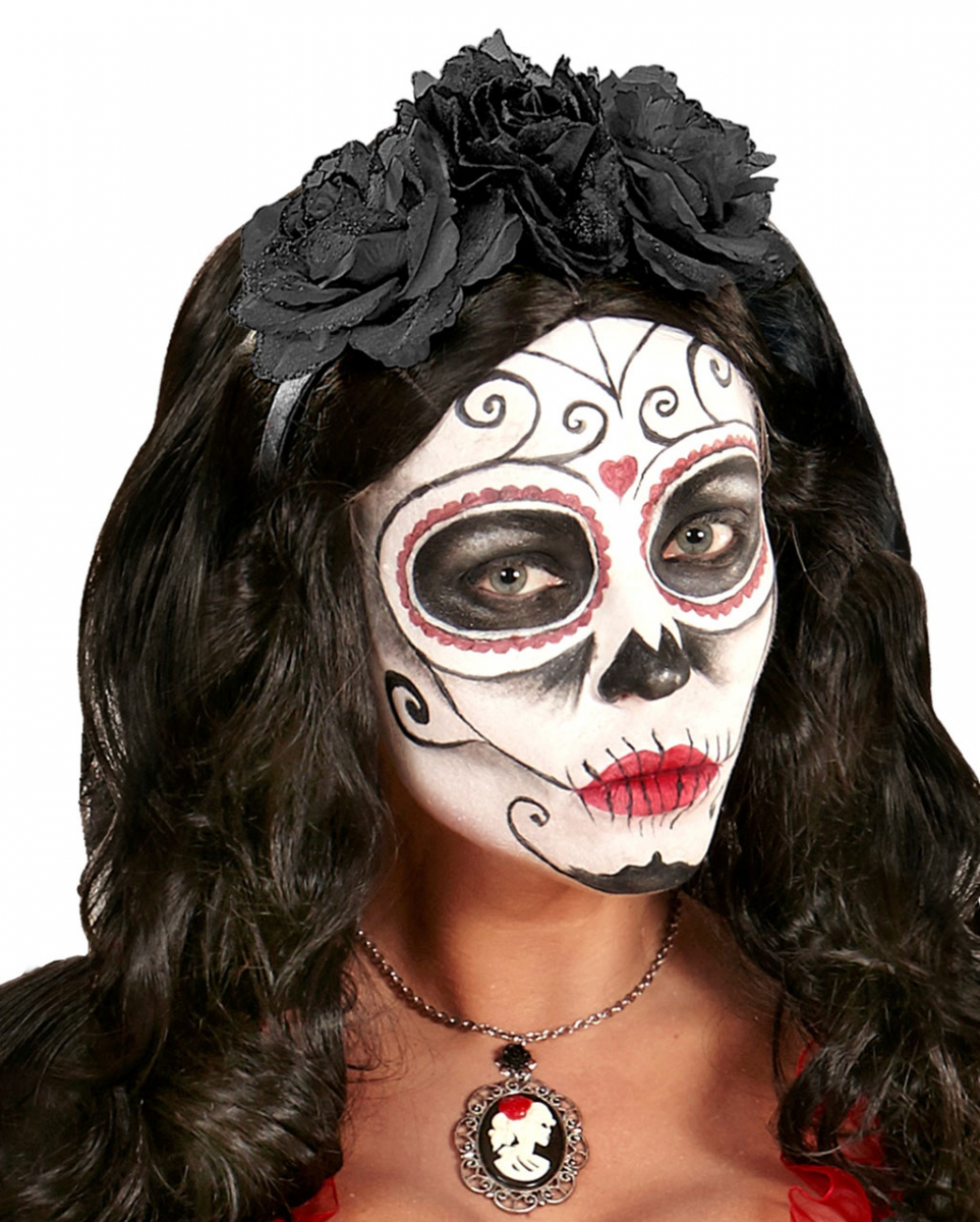 Haarreif mit Schwarzen Rosen und Glitter Romantischer Haarreifen als Gothic Kopfschmuck Ganz gleich, ob zum Tag der Toten, Halloween, Fasching oder anderen Anlässen: Unser Haarreif mit schwarzen Rosen und Glitter ist ein düster anmutender Gothic-Kopfschmuck für romantische Kostüme. Der Haarreif mit schwarzen Rosen und Glitter ist in Einheitsgröße verfügbar. Er ist mit schwarzen Rosen bestückt, die über einen leichten Glitter-Effekt verfügen. Ein Muss für Halloween und Gothic Fans. Lieferumfang: 1 x Haarreif mit schwarzen Rosen und Glitter Farbe: Schwarz Größe: Einheitsgröße für Erwachsene Material: Kunststoff Romantischer Haarreif mit Blumen und Glitzer Kopfschmuck mit schwarzen Rosen Tag der Toten Kostümzubehör Der Artikel ist ein Kostümzubehör für Erwachsene und kein Spielzeug. Nicht für Kinder unter 3 Jahren geeignet. Kann Kleinteile enthalten, die verschluckt werden können – Erstickungsgefahr. Von Feuer und offenen Flammen fernhalten.