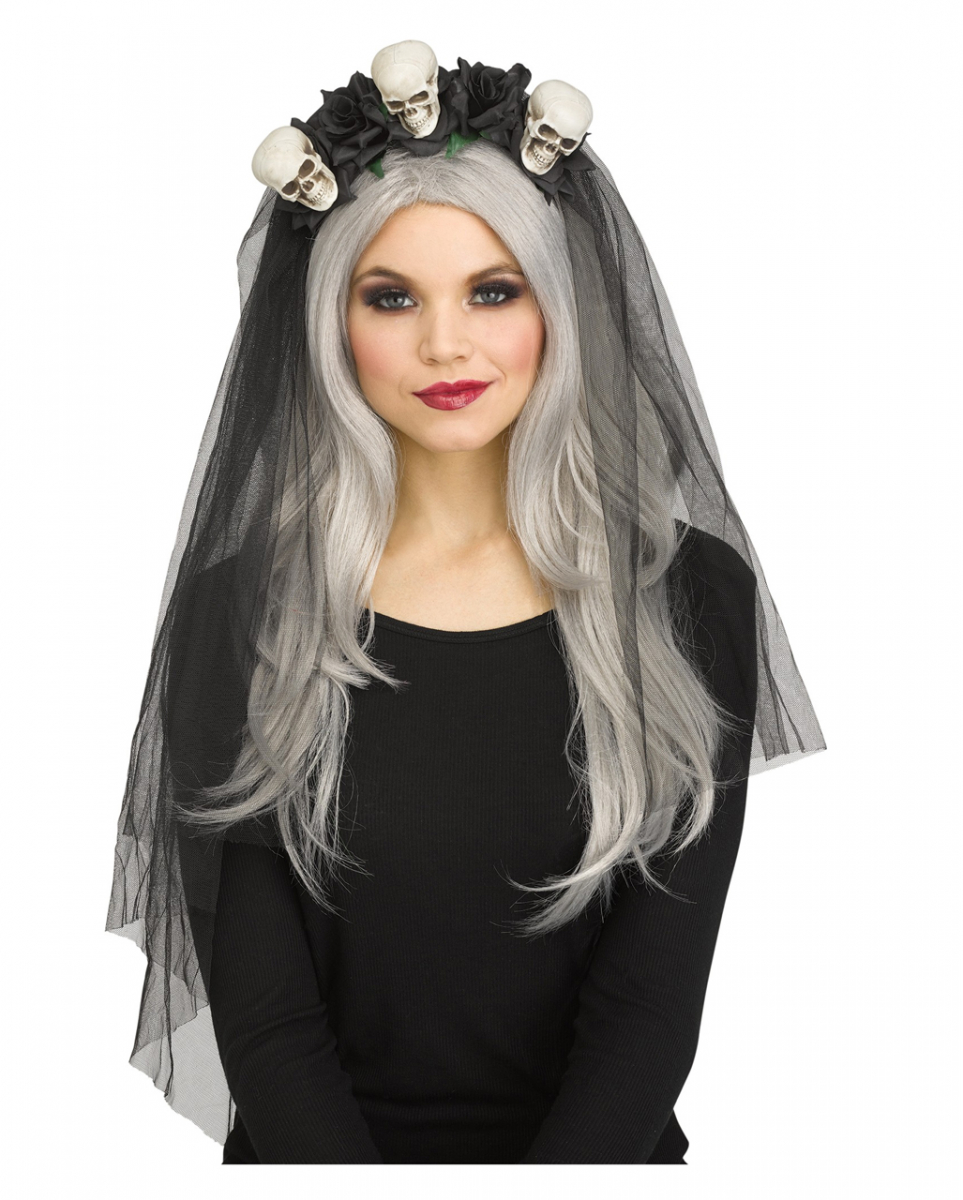 Schwarzer Kostüm-Schleier mit Skulls Halloween Schleier mit Totenschädeln als Accessoire für Tag der Toten Verwandle dich in eine hübsche schwarze Braut und trage den extravaganten, vielseitigen Schleier mit Skulls und Blumen Kopfschmuck für Halloween, Fasching und Karneval. Unser Schleier mit Skulls als Kostümzubehör ist ein echter Blickfang für den 31. Oktober, Tag der Toten oder im Karneval um so den Winter zu vertreiben. Der Kostüm-Schleier mit Skulls ist auf einem Haarreifen montiert und besteht aus einem transparenten Stoff als Schleier, der kleine Totenköpfe aus Kunststoff und Blüten als Verzierung zeigt. Lieferumfang: 1 x Schwarzer Kostüm-Schleier mit Skulls Farbe: Schwarz / Weiß Größe: Einheitsgröße für Erwachsene Material: Polyester, Kunststoff