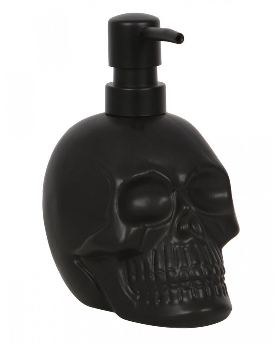 Schwarzer Keramik Totenkopf Seifenspender Ausgefallener Gothic Totenschädel als stylisches Badezimmer Accessoire Gestalte jetzt dein alternatives Zuhause in eine stylische Gruft und gönne dir für das Badezimmer einen extravaganten Seifenspender. Unser schwarzer Totenkopf Seifenspender ist aus matt, glasiertem Keramik gefertigt und ist dadurch ein einzigartiger Hingucker. Biete dir und deinen Gästen für dein Badezimmer und Waschbecken &quot,etwas anderes&quot, Dieser Seifenspender mit schwarzem Totenschädel für Flüssigseife ist ein Muss für Liebhaber des morbiden und okkulten und sollte als Wohnaccessoire in keinem Gothic-Badezimmer fehlen. Perfekt als Geschenk und Mitbringsel. Um die matte Glasur zu schützen, darf der Seifenspender nur von Hand gewaschen werden. Lieferumfang: 1 x Schwarzer Totenkopf Seifenspender aus Keramik Farbe: Schwarz Größe: ca. 12,5 x 11,5 x 9 cm Gewicht: 300 g Material: Keramik, Kunststoff Schwarzer Totenkopf als Seifenspender Stylisch, matte Glasur Ohne Flüssigseife Füllmenge. ca. 300 ml. Ideales Geschenk und Mitbringsel