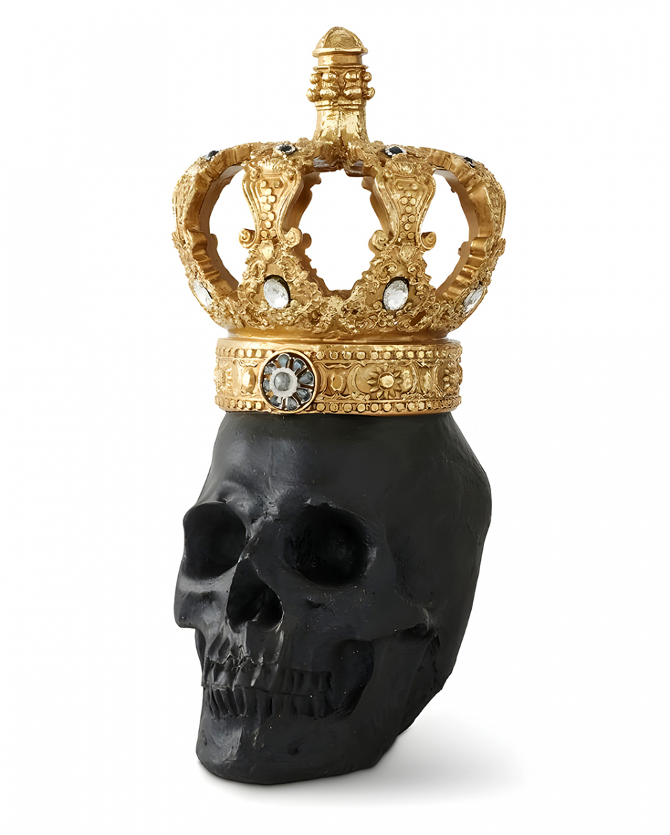 Schwarzer Totenkopf mit verzierter Königskrone 30cm Luxuriös geschmückte Totenschädel Skulptur als Gothic Deko und Geschenkidee Der schwarze Totenkopf mit verzierter Königskrone verleiht deinem Zuhause eine geheimnisvolle und königliche Atmosphäre. Der royale Schädel ist ein schauriges Kunstwerk, das deine Liebe zur Gothic-Kultur und zur dunklen Ästhetik zum Ausdruck bringt. Der schwarze Totenschädel mit verzierter Königskrone hat eine imposante Größe von ca. 30 x 18 x 15 cm. Hergestellt aus hochwertigem Polyresin, ist das royale Gothic Kunstwerk sehr robust und langlebig. Die Krone ist mit funkelnden Strasssteinen verziert. Lieferumfang: 1 x Schwarzer Totenkopf mit verzierter Königskrone 30cm Farbe: Schwarz, Gold Größe: ca. 30 x 18 x 15 cm Material: Polyresin (Kunststein) Extravagant aussehender Totenkopf mit Königskrone Reichlich mit Edelsteinen und Muster verziert In der Mitte ist die Krone mit Strasssteinen Versehen Eindrucksvolle Gothic Deko für Totenkopf Liebhaber Der Artikel ist ein Gothic Wohnaccessoire und kein Spielzeug. Nicht für Kinder unter 3 Jahren geeignet. Kann Kleinteile enthalten, die verschluckt werden können – Erstickungsgefahr. Von Feuer und offenen Flammen fernhalten.