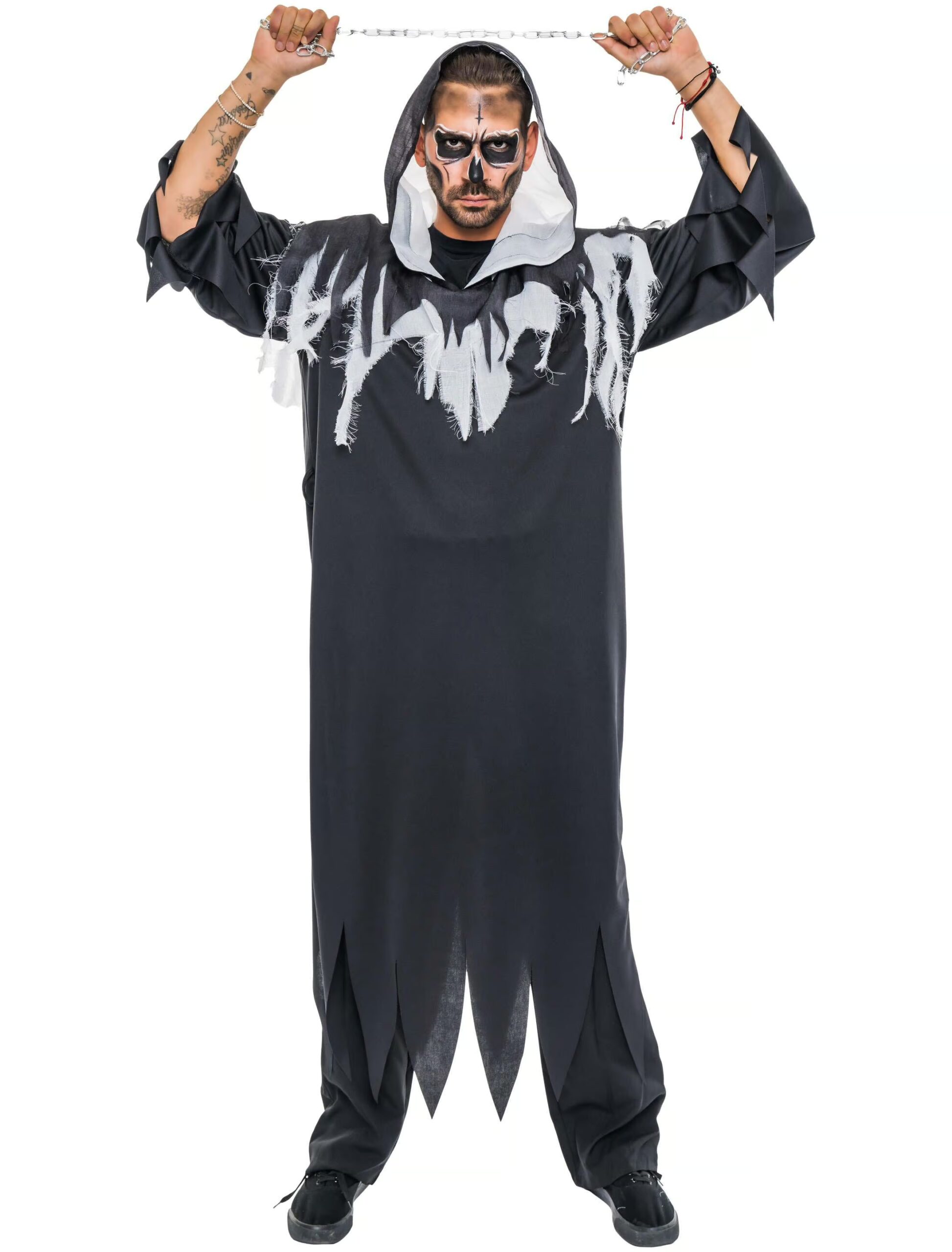 Sensenmann mit Kette Herren schwarz/weiß one size, ideal für Karneval & Fasching