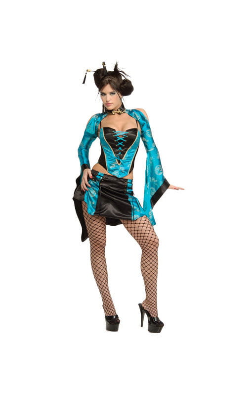 Geisha Kostüm türkis Superknappes Geisha Kostüm für Fasching Verwandel dich an Fasching in eine fernöstliche Schönheit mit dem Geisha Kostüm in türkis. Das Kostüm besteht aus Corsage, Rock und Bolero. Die Corsage und der Bolero sind aus türkisfarbenen Stoff hergestellt. Auf dem Stoff sind goldfarbene asiatische Symbole aufgedruckt. Der Kragen des Boleros ist mit goldfarbener Borte besetzt, die zugeknöpft werden kann. Der Rock besteht aus schwarzem Stoff mit türkisfarbenen Einsätzen. Lieferumfang: Bolerojäckchen, Corsage und Rock Material: Polyester Farbe: türkis und schwarz Größen: S, M Größe S M Breite Corsage ca. 39 cm ca. 42 cm Länge Corsage ca. 34 cm ca. 36 cm Bundweite Rock ca. 60 cm ca. 64 cm Länge Rock ca. 36 cm ca. 38 cm Schulterbreite Bolero ca. 34 cm ca. 38 cm Armlänge Bolero ca. 60 cm ca. 60 cm