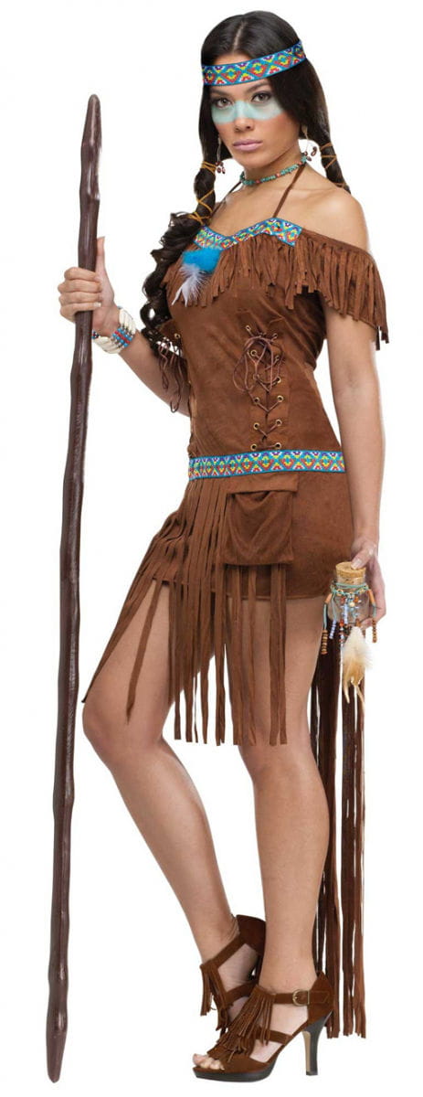 Sexy Medizin Frau Verkleidung Hast du dein Medizinfrau Kostüm an, wollen sich tausend Männer von dir in deinem Tipi behandeln lassen. Das Sexy Medizin Frau Kostüm besteht aus einem Kleid und einem Stirnband. Das Kleid ist ein Neckholder Kleid, die Schultern können dadurch offen gezeigt werden. Am oberen Saum und an der Hüfte hat das Kleid ein Band mit indianischem Muster, am Dekollte ist zusätzlich ein türkis-weißer Federschmuck angebracht. Das Kleid aus Wildleder-Imitat hat an beiden Seiten eine Schnürung, so kann das Kleid optimal an die Konturen angepasst werden. Das Kleid selbst ist sehr kurz, hat aber vorne Fransen bis zum Knie und hinten bis fast zum Boden. Das Stirnband hat das gleiche Muster wie die Bänder am Kleid. Lieferumfang: Kleid, Stirnband Farbe: Braun Größen: S/M entspricht 36/38, M/L entspricht 40/42 Material: 100% Polyester Grösse: S/M ca. 36/38 M/L ca. 40/42 Brustumfang: ca. 76 cm ca. 80 cm Taillenumfang: ca. 70 cm ca. 74 cm Hüftumfang: ca. 84 cm ca. 88 cm Gesamtlänge Kostüm (ohne Fransen) ca. 75 cm ca. 80 cm Achtung: Der Artikel ist Kostüm für Erwachsene und ist kein Spielzeug. Nicht für Kinder unter 3 Jahren geeignet. Kann Kleinteile enthalten die verschluckt werden können – Erstickungsgefahr. Von Feuer und offenen Flammen fernhalten.