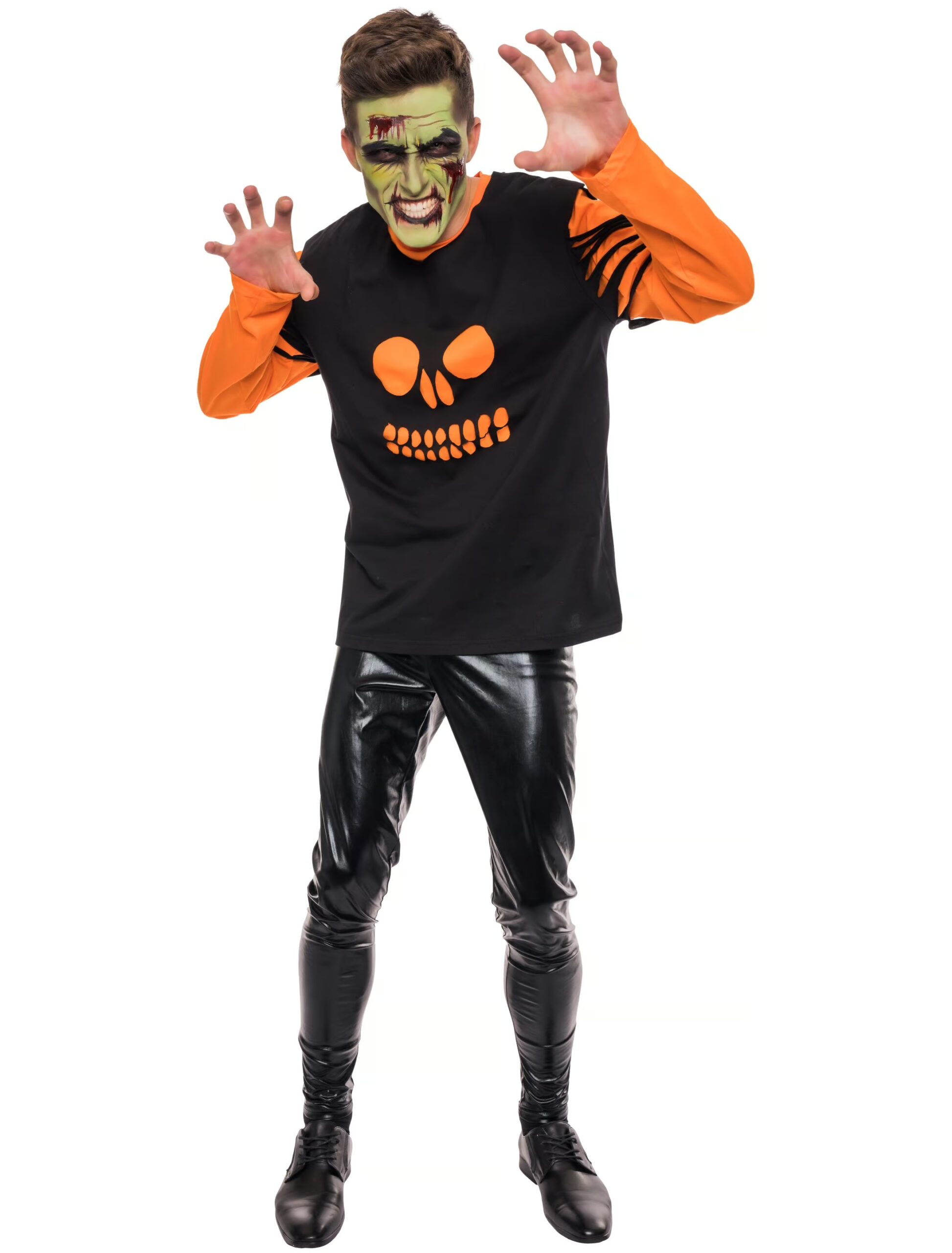 Shirt Langarm Kürbis schwarz/orange L/XL, ideal für Karneval & Fasching