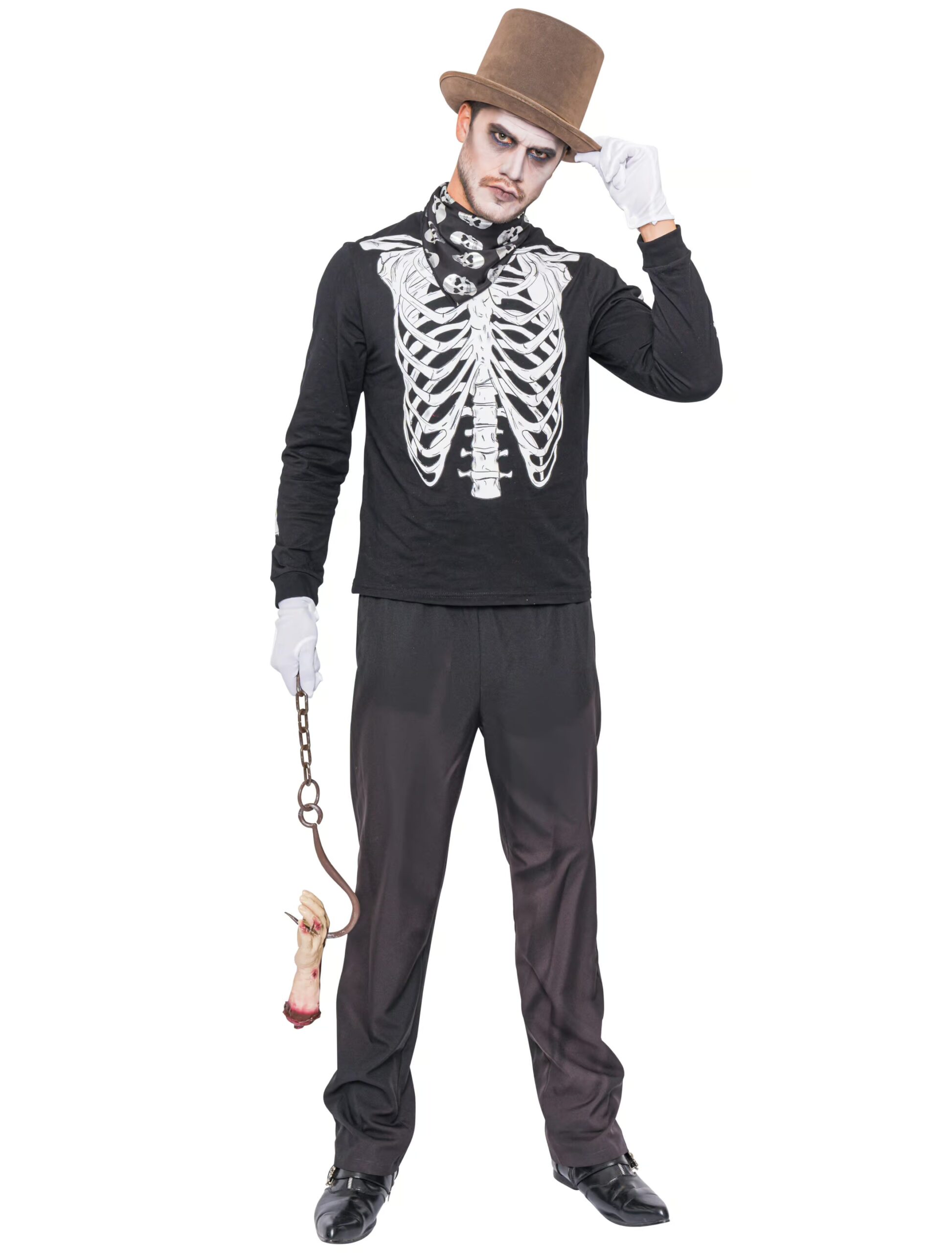 Du bist zu einer Halloweenparty eingeladen und suchst noch den letzten Schliff für Deine schaurige Verkleidung? Gar kein Problem! Unser langarm Shirt Skelett für Herren darf hier nicht fehlen. In der Front sowie auf den Ärmeln ist ein Skelett abgedruckt. Ein schönes Kostümteil für Karneval und Fasching. Das langarm Shirt ist aus 100% Baumwolle gefertigt. Pflegehinweis: Bitte vor dem Bügeln das Shirt auf links drehen!