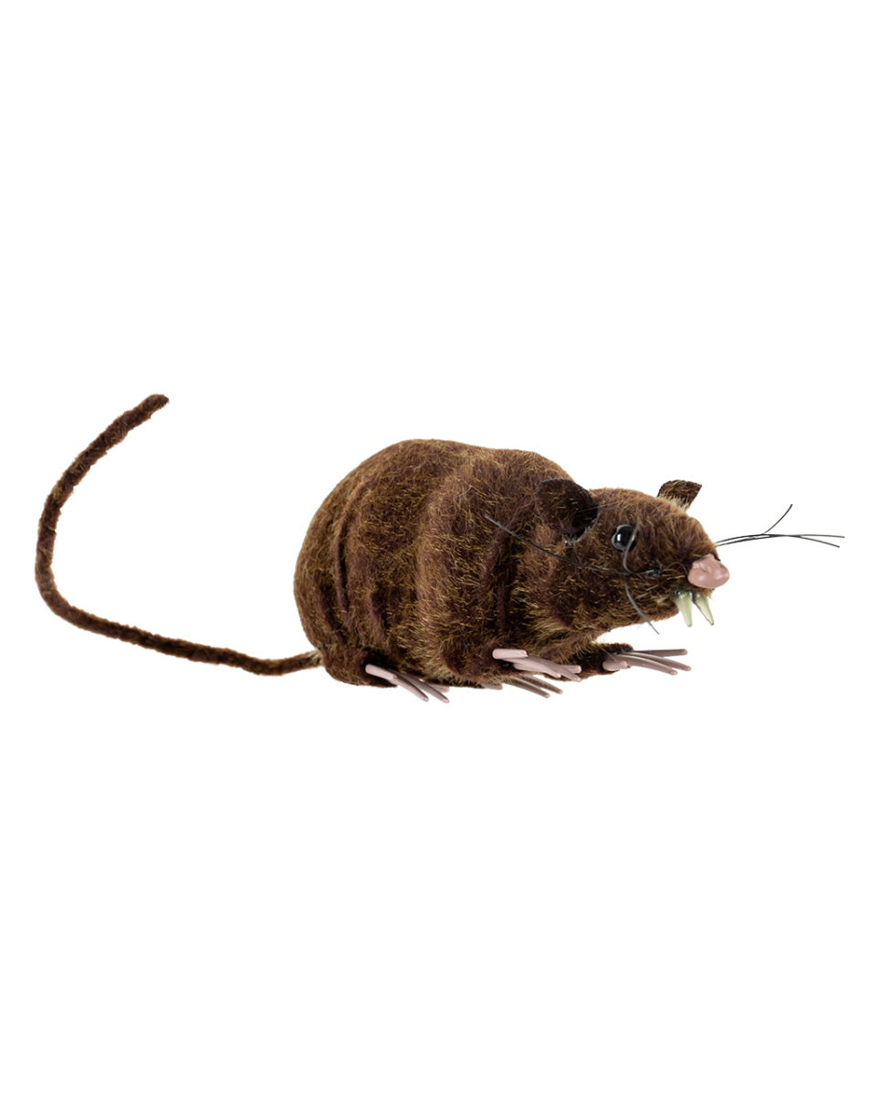 Sitzende Kanalratte mit Kunstfell als Deko 14 cm Witzige Ratten Figur mit Kunstpelz Hol dir die sitzende Kanalratte mit Kunstfell als Deko für Halloween. Platziere den Nager in deinem Regal oder auf der Küchenzeile und sorge für niedliche Akzente. Ihre schwarzen Knopfaugen, die niedliche Nase und die kleinen Pfoten verleihen dieser Kunststoff Ratte eine authentische Note. Besonders echt sieht sie dank ihres Kunstfells aus. Lieferumfang: 1 x Sitzende Kanalratte mit Kunstfell als Deko 14cm Farbe: Braun, Pink, Schwarz Größe: ca. 14 x 6 x 5,5 cm Material: Kunststoff, Polyester Ungeziefer Deko mit Kunstfell Kostümzubehör für Magier, Zauberer und Wesen der Nacht Klassische Halloween Dekoration oder Geschenk für Liebhaber der Nagetiere