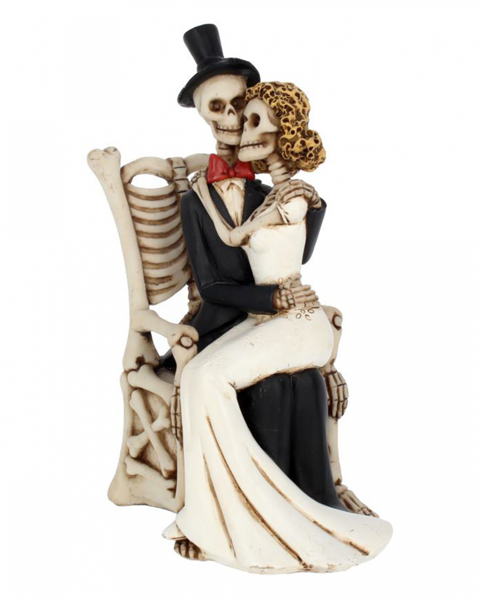 Skelett Hochzeitspärchen – In Guten wie in Schlechten Zeiten Skelett Paar auf Stuhl als dekoratives Hochzeitsgeschenk für Gothics Unser alternatives Hochzeitsgeschenk lässt jedes Gothic Herz höher schlagen. Das Skelett Hochzeitspärchen macht sich hervorragend in deinem Erinnerungsregal und ist ein Hochzeitsgeschenk für alle, die es alternativ mögen. Das Skelett Hochzeitspärchen In guten wie in schlechten Zeiten ist ca. 25 cm hoch und aus Kunststein gefertigt. Die handbemalte Skelettfigur eignet sich als Hochzeitsgeschenk und bringt düstere Gothic-Romantik in euer Reich. Lieferumfang: 1 x Skelett Hochzeitspärchen – In guten wie in schlechten Zeiten Farbe: Beige, Schwarz, Weiß, Rot Größe: ca. 25 cm Material: Polyresin Skelett-Figuren als romantisches Hochzeitspärchen Nichts kann die beiden trennen, nicht einmal der Tod Aus hochwertigem Polyresin gegossen Liebevoll von Hand bemalt Der Artikel ist ein Dekoartikel. Nicht für Kinder unter 3 Jahren geeignet. Kann Kleinteile enthalten, die verschluckt werden können – Erstickungsgefahr. Von Feuer und offenen Flammen fernhalten.