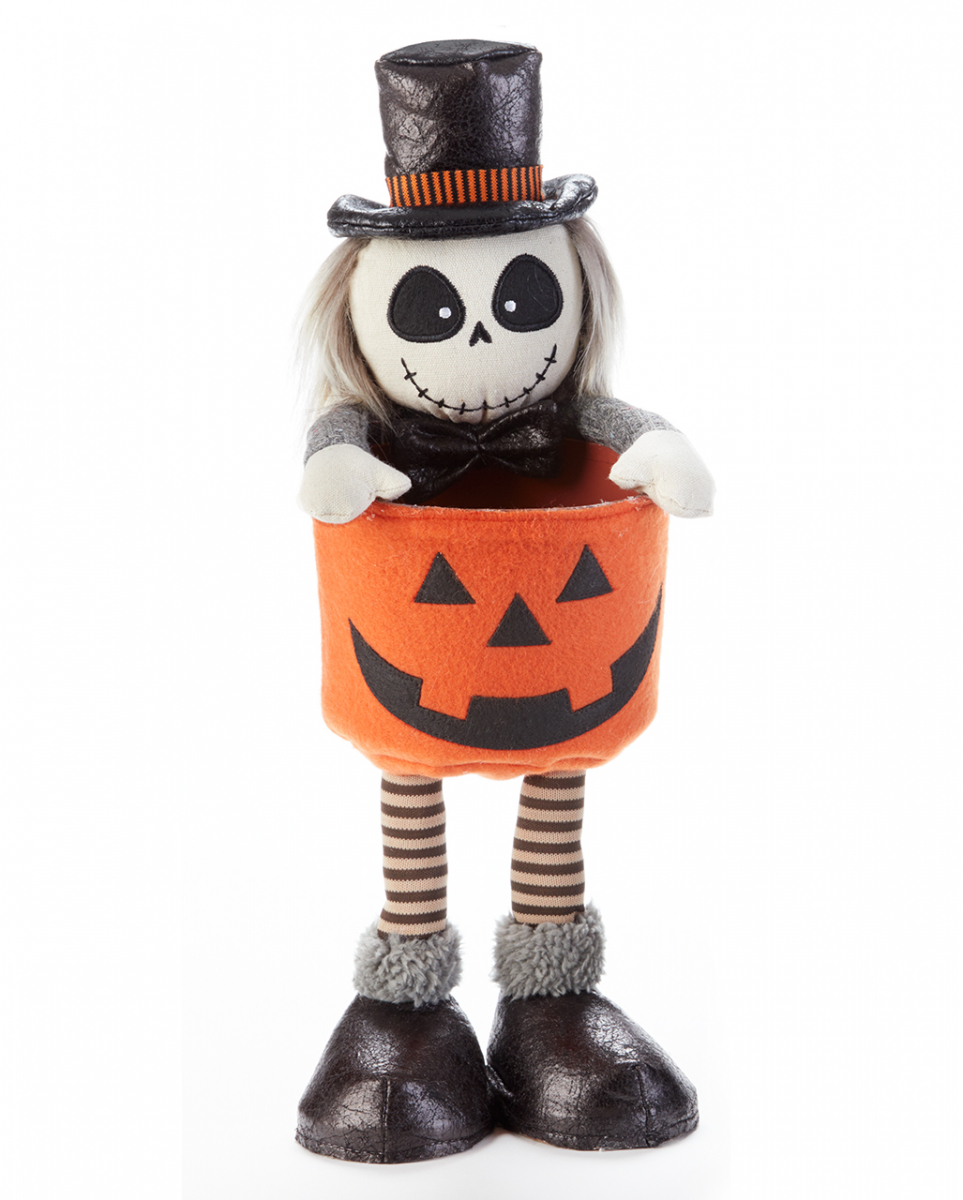 Skelett Gentleman mit Kürbis Schale für dein Trick or Treat 39cm Freundliche Skelett Figur als spooky Halloween Schale Diese Skelett Gentleman mit Kürbis Schale für dein Trick or Treat sorgt für pure Freude. Unser Knochen Männlein macht sich super als Bonbonschüssel und ist auch ein echter Eyecatcher auf deinem Couchtisch. Unser Skelett Gentleman mit Kürbis Schale ist 39 cm groß und aus weichem Material gefertigt. Es handelt sich um einen Knochen Gentleman, der freundlich lächelt. Er hält eine kleine Pumpkin Schale in seinen Händen, die du mit Candy befüllen kannst. Lieferumfang: 1 x Skelett Gentleman mit Kürbis Schale für dein Trick or Treat 39cm Farbe: Schwarz, Orange, Grau Größe: ca. 39 cm Material: Polyester Kinderfreundliche Gruseldeko Bonbonschüssel aus Stoff Für Süßes oder Saures Der Artikel ist ein Kostümzubehör für Erwachsene und kein Spielzeug. Nicht für Kinder unter 3 Jahren geeignet. Kann Kleinteile enthalten, die verschluckt werden können – Erstickungsgefahr. Von Feuer und offenen Flammen fernhalten.