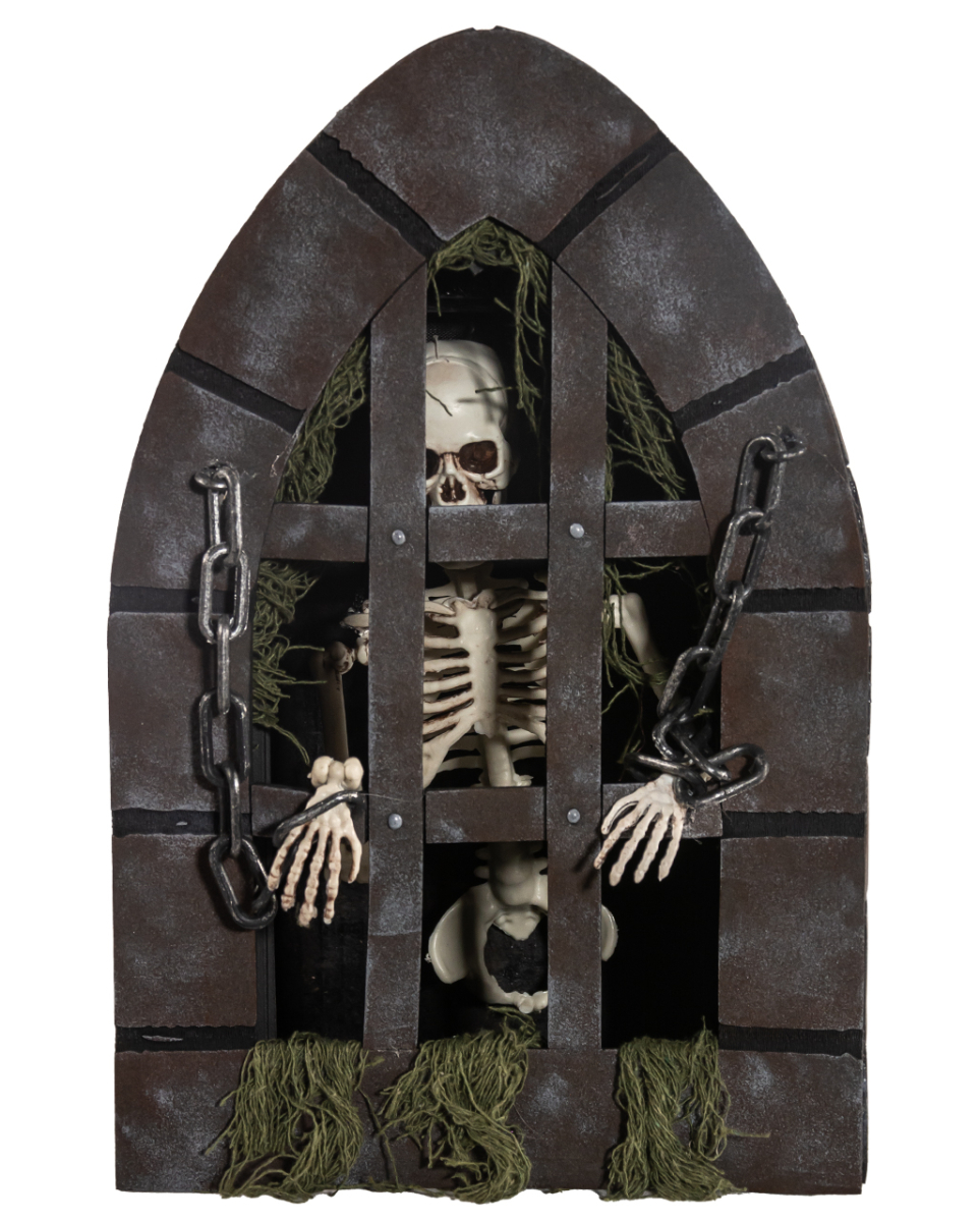Gefangenes Skelett im Gefängnis 31cm Gruseliges Gerippe in Zelle, das auszubrechen versucht Unser gefangenes Skelett im Gefängnis versucht sich mit aller Macht aus seinem Kerker zu befreien. Die Halloween Animatronic zeigt ein gefesseltes Gerippe im Kerker mit Grusel-Sound, Licht und Bewegung. Unsere bewegliche Skelett Deko zeigt ein gefangenes Skelett im Gefängnis. Die gruselige Animatronic ist soundbasiert und funktioniert mit Batterien, die du separat dazu kaufen kannst. Sie passt auf jeden Tisch und lässt deine Gäste staunen. Lieferumfang: 1 x Gefängnis mit Skelett Animatronic 31cm Farbe: Grau, Weiß, grün, schwarz Größe: ca. 20,5 x 10,5 x 31 cm Batterien: 3 x AAA-Batterien, nicht inkl. Material: Kunststoff, EVA, Karton Gefesseltes Gerippe als Torso in einem Kerker Skelett versucht aus seinem Gefängnis auszubrechen Lautes Geklapper, Sound und Licht als Spezialeffekt Die Halloween Animatronic ist soundaktiviert Lustige Halloween Deko und Geschenk für Liebhaber von Halloween Gimmicks