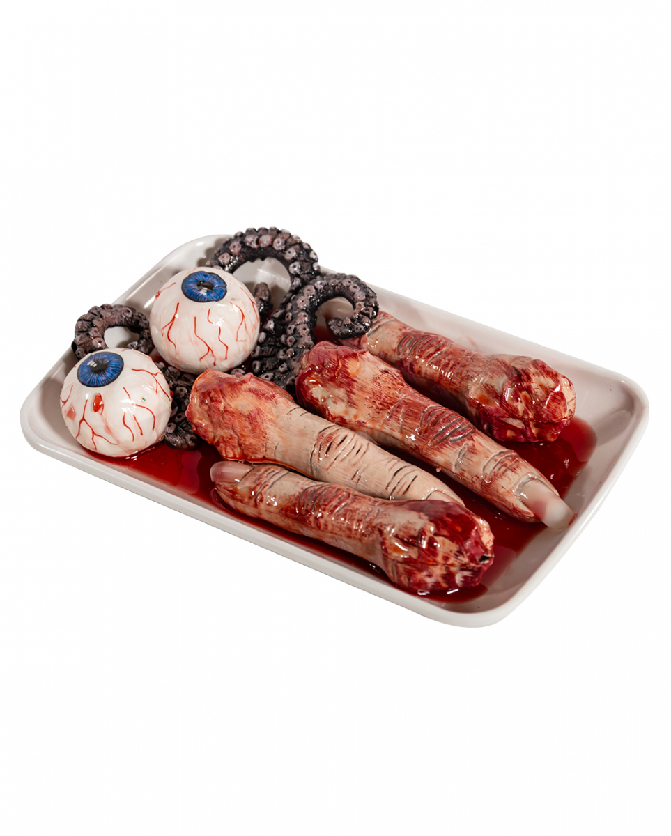 Weißer Essteller mit blutigem Frutti de Gore und Oktopuss als Deko 19 cm Pimpe mit der gruselige Splatter Deko und Horrorfilm Requisite dein Halloween Buffet Krasse Horrorfilme sind dein Steckenpferd? Dann haben wir die perfekte Deko für dich! Ob als Blickfang am Buffet oder als Teil eines gruseligen Tischarrangements, der Speiseteller mit blutigem Frutti de Gore und Calamari wird für Aufsehen sorgen. Der Speiseteller mit blutigem Frutti de Gore und Calamari ist ca. 19 x 12 x 4 cm groß und aus Kunststoff. Die detailgetreue Gestaltung sorgt dafür, dass die Finger, Augäpfel und der Oktopus echt aussehen. Der glänzende Bluteffekt verstärkt den Schock. Lieferumfang: 1 x Speiseteller mit blutigem Frutti de Gore und Calamari 19cm Farbe: Weiß, Hautfarben, Violett, Rot Gewicht: 132 g Größe: ca. 19 x 12 x 4 cm Material: Kunststoff Frische, abgehackte Finger, Augäpfel und ekliger Oktopus als krasse Splatter Deko Serviert auf einem weißen Teller mit nass glänzendem Blut als Schockeffekt Gestalte jetzt dein Horrorfilm-Szenario wie aus ",Blutgericht in Texas", Für Splatter Fans von Schweigen der Lämmer, Dahmer und Wrong Turn Krasse Halloween Deko und Horror Film Requisite mit realistischem Aussehen Ein Muss für die Kannibalen Küche oder Kühlkammer eines Schlachthauses Der Artikel ist eine Halloween Deko und kein Spielzeug. Nicht für Kinder unter 3 Jahren geeignet. Kann Kleinteile enthalten, die verschluckt werden können – Erstickungsgefahr. Von Feuer und offenen Flammen fernhalten.