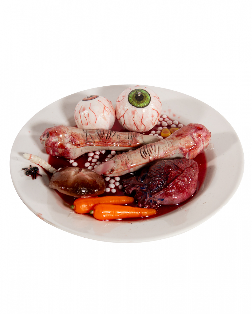Weißer Essteller mit blutigem Herz und Körperteilen als Deko 20 cm Krasse Splatter Deko für Fans von heftigen Exploitation Movies und Horrorfilmen Bist du bereit, deinen Gästen an Halloween einen Schrecken einzujagen? Stell dir vor, du präsentierst ihnen den weißen Essteller mit blutigem Herz und Körperteilen. Sie werden sich wie ein einem Horrorfilm á la ",Texas Chainsaw Massaker", fühlen. Der Speiseteller ist ca. 20 x 20 x 5 cm groß und aus robustem Kunststoff. Das realistische Aussehen des blutigen Herzens, der Finger und der Augäpfel wird durch weiße Maden und Fleischfliegen sowie nass glänzendes Blut noch verstärkt. Lieferumfang: 1 x Speiseteller mit blutigem Herz, Finger und Augen 20cm Farbe: Weiß, Hautfarben, Rosa, Rot Größe: ca. 20 x 20 x 5 cm Gewicht: 200 g Material: Kunststoff Blutiges Herz, mit Finger und Augäpfel auf einem weißen Teller als Splatter Deko Inkl. weißen Maden, Fleischfliegen und nass glänzendem Blut Perfekt für ein Horrorfilm-Szenario wie aus Texas Chainsaw Massaker Für Splatter Fans von Schweigen der Lämmer, Dahmer und Wrong Turn Krasse Halloween Deko und Horror Film Requisite mit realistischem Aussehen Ein Muss für die Küche oder Kühlkammer deines Geisterhauses Der Artikel ist eine Halloween Deko und kein Spielzeug. Nicht für Kinder unter 3 Jahren geeignet. Kann Kleinteile enthalten, die verschluckt werden können – Erstickungsgefahr. Von Feuer und offenen Flammen fernhalten.