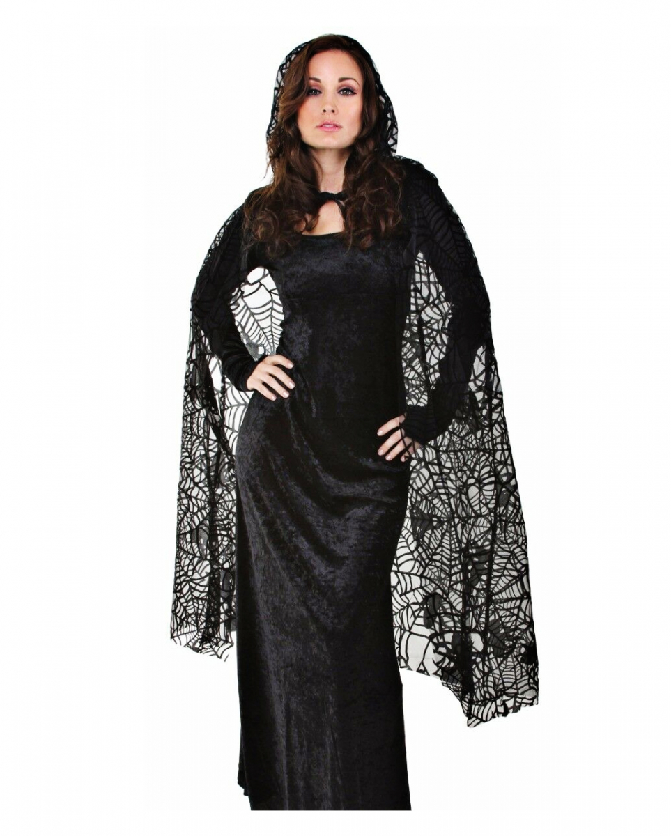 Spinnennetz Umhang Extravagante Kapuzen Cape mit Spinnweben als Design Hexen sind Wesen, die in verschiedener Gestalten auftreten können, mal wunderschön wie die Böse Königin aus Schneewittchen und dann mal abgrundtief hässlich, wie bei Hänsel und Gretel. Beide könnten das elegante Spinnennetz Kapuzencape tragen. Hexenkostüme sind eine beliebte Verkleidung für Karneval und auch zu Halloween. Das elegante Spinnennetz Kapuzencape passt zu jeder Hexenverkleidung, kann aber auch für eine Vampirlady und andere geheimnisvolle Kreaturen der Nacht verwendet werden. Das Hexen Cape ist aus transparentem Gewebe und hat ein exquisites geflocktes Spinnennetz und Spinnenmuster. Das Spinnennetz Kapuzencape ist relativ eng geschnitten und schmiegt sich von daher an deine Figur an. Einfach das passende Kostüm Accessoire für viele geheimnisvolle Damenkostüme. Das Spinnennetz Kapuzencape ist etwa 140 cm lang, hat eine Kapuze, wird mit zwei Bändern geschlossen. Trage zur Hexenverkleidung die Spinnen Halskette und ein neckisches Gothic Hexenhütchen . Material: 100 % Polyester Länge: ca. 140 cm