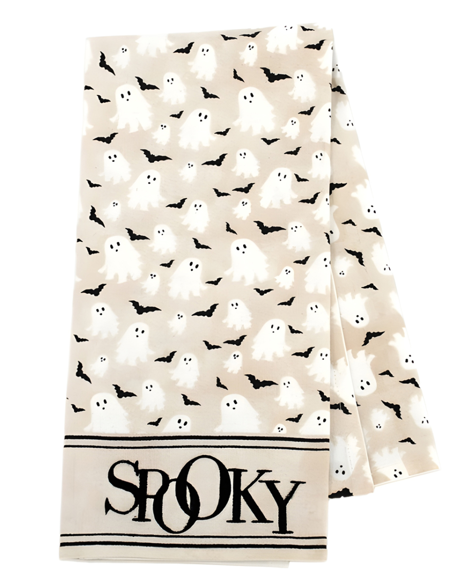 Spooky Küchenhandtuch mit Fledermäusen und Geistern als Motiv Gruseliges Gespenster Küchentuch mit Fledermäusen Lustige Geister und Fledermäuse im Allover Print machen dieses Geschirrtuch zum magischen Blickfang. Das spooky Küchenhandtuch mit Fledermäusen und Geistern als Motiv sorgt im Nu für trockenes Geschirr! Das Spooky Küchenhandtuch besteht aus 100% hochwertiger Baumwolle und ist sehr saugstark sowie fusselfrei. Es ist weich und ideal, um Hände und Geschirr abzutrocknen. Lieferumfang: 1 x Spooky Küchenhandtuch mit Fledermäusen und Geistern als Motiv Farbe: Beige, Weiß, Schwarz Größe: One Size Material: 100% Baumwolle Geschirrtuch mit lustigen Halloween Spukgestalten Lustige Fledermäuse und Gespenster und die Aufschrift ",SPOOKY", Geschirrtuch als Halloween Homeware Fusselfrei und saugstark aus hochwertiger Baumwolle gefertigt