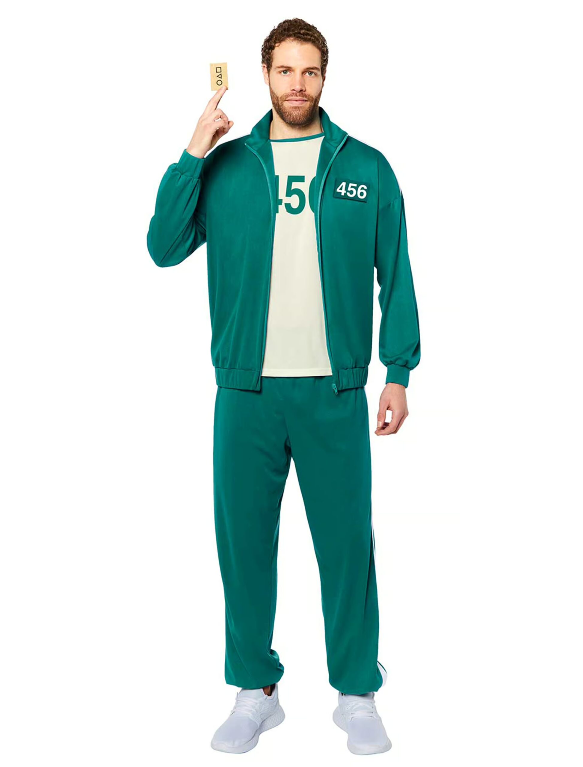 Mit unserem dreiteiligen Squid Game Jogginganzug 456 wirst Du direkt aus der Serie in die Partywelt katapultiert – aber keine Sorge, hier geht’s nicht um Leben und Tod, sondern um den ultimativen Spaß! Das Set besteht aus einem Oberteil, einer Hose und einem T-Shirt, die genauso aussehen wie die ikonischen Outfits der Spieler aus der Serie. Die typische grüne Farbe mit der weißen 456 lässt keinen Zweifel: Du bist der mutige Held, der es bis zum Ende schafft. Mach Dich bereit, das Squid Game zu rocken. Denn eines ist sicher: In diesem Outfit bist Du der Gewinner, egal, welches Spiel gespielt wird!