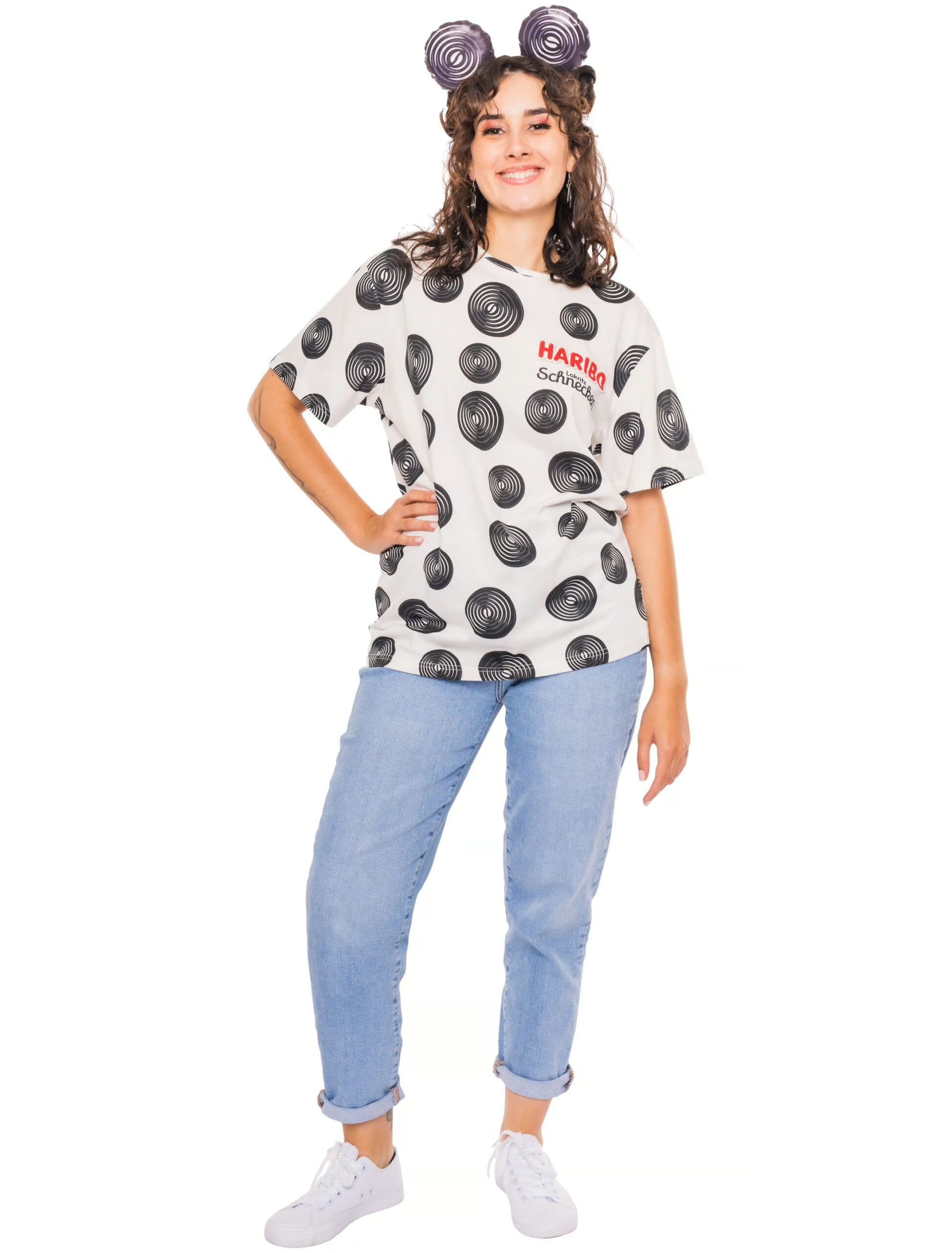 Tauche ein in die verlockende Welt der Süßigkeiten mit unserem exklusiven T-Shirt HARIBO Lakritz Schnecken Unisex – erhältlich in den Größen von S bis 3XL und exklusiv nur bei Deiters! Dieses lässige T-Shirt ist nicht nur ein Kostüm, sondern auch eine stilvolle Hommage an die köstlichen HARIBO Lakritz Schnecken. Hergestellt aus hochwertiger Baumwolle bietet dieses T-Shirt nicht nur einen angenehmen Tragekomfort, sondern auch einen Hauch von süßem Charme durch das einzigartige Lakritz Schnecken-Design. Die schwarze Farbe des Shirts bildet einen eleganten Hintergrund für die verlockenden Lakritz-Spiralen. Egal, ob du auf einer Kostümparty auffallen, beim Karneval stilvoll glänzen oder einfach deine Liebe zu Lakritz zeigen möchtest – dieses T-Shirt ist die ideale Wahl. Es kombiniert nicht nur ein ansprechendes Design mit einem weichen und bequemen Tragegefühl, sondern ist auch exklusiv bei Deiters erhältlich. Mit dem T-Shirt HARIBO Lakritz Schnecken Unisex setzt du nicht nur ein modisches