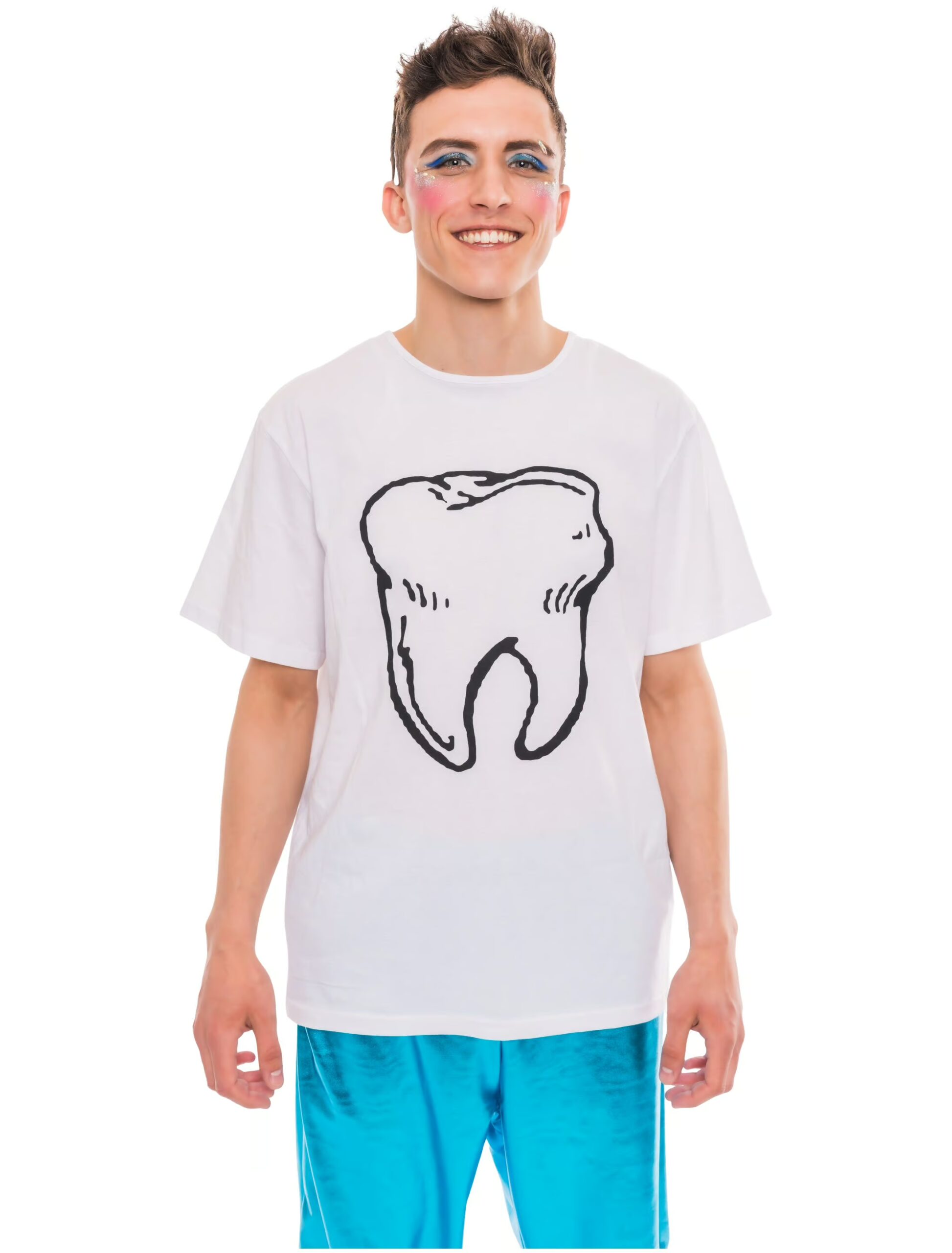 T-Shirt Zahn Herren weiß 3XL, ideal für Karneval & Fasching