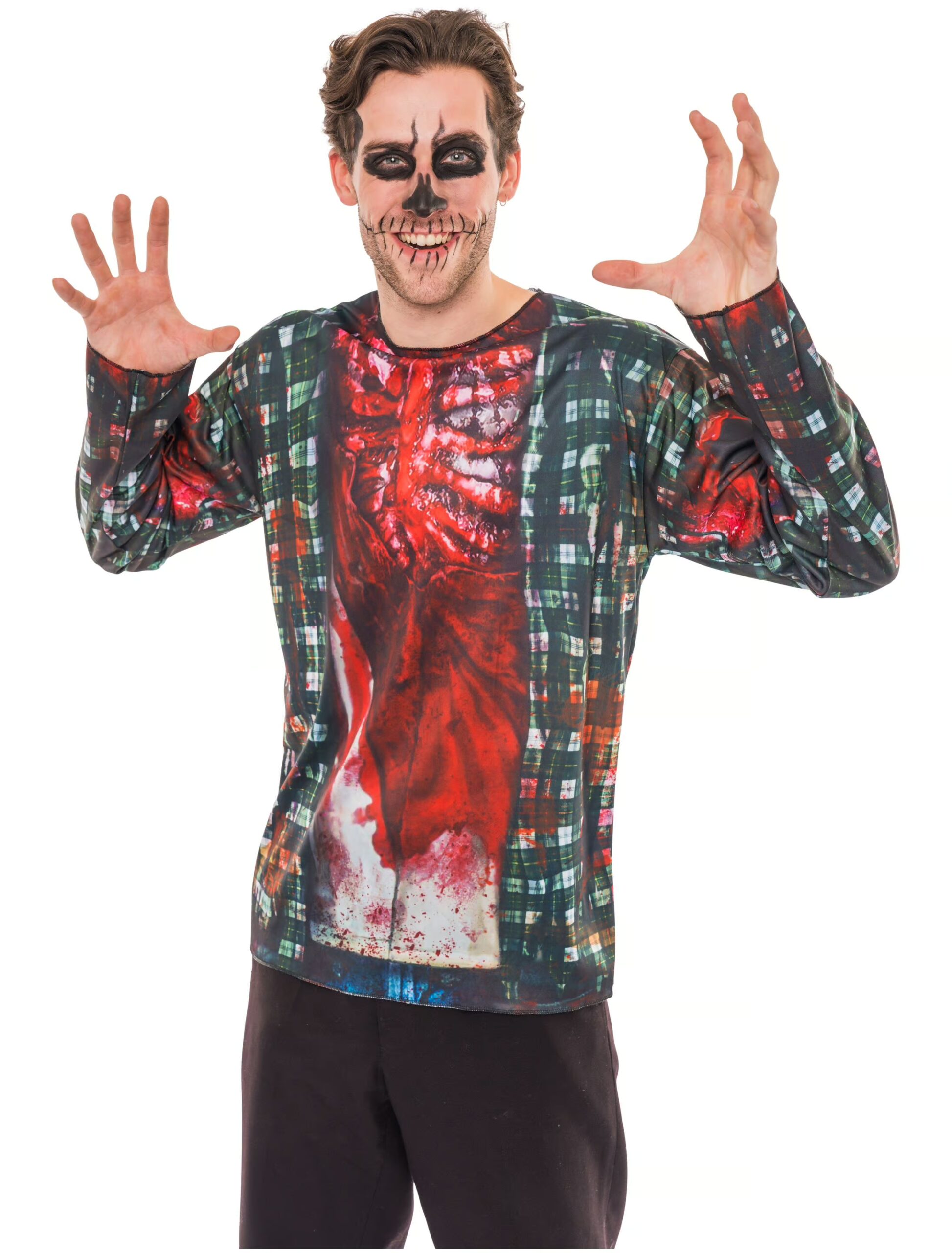T-Shirt Zombie langarm Herren schwarz L, ideal für Karneval & Fasching