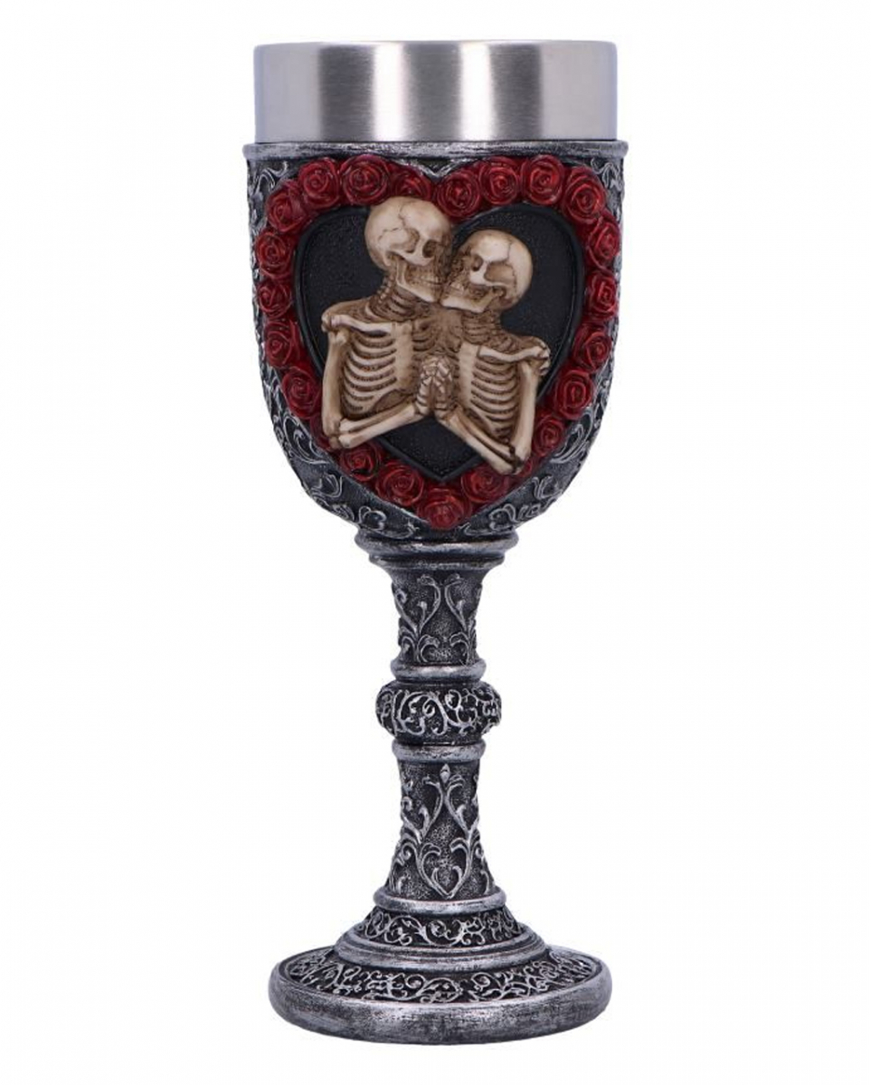 To Have and To Hold Skelettpaar Kelch 19,5cm Düsterer Kelch mit Skeletten, die sich halten In trauter Zweisamkeit präsentieren sich die zwei Skelette auf dem formschönen Gothic-Kelch. Der To Have and To Hold Skelettpaar Kelch ist ein Muss für alle, die ein romantisch-düsteres Ambiente lieben. Der To Have and To Hold Skelettpaar Kelch ist ca. 19,5 cm hoch und besteht aus Kunststein. Der Einsatz ist aus Edelstahl und perfekt zur hygienischen Reinigung nach Gebrauch. Sehr detailreich und von Hand bemalt. Lieferumfang: 1 x To Have and To Hold Skelettpaar Kelch 19,5cm Farbe: Grau, Silber, Rot, Beige, Schwarz Größe: ca. 19,5 x 8 x 8,5 cm Material: Polyresin (Kunststein), Edelstahl Morbider Gothic-Kelch mit Gerippe Liebespaar in Rosenherz Mit Edelstahleinsatz zum leichten Reinigen Gothic Kelch als morbide Tischdekoration Kelch mit skelettiertem Liebespaar Liebevoll und detailreich von Hand bemalt