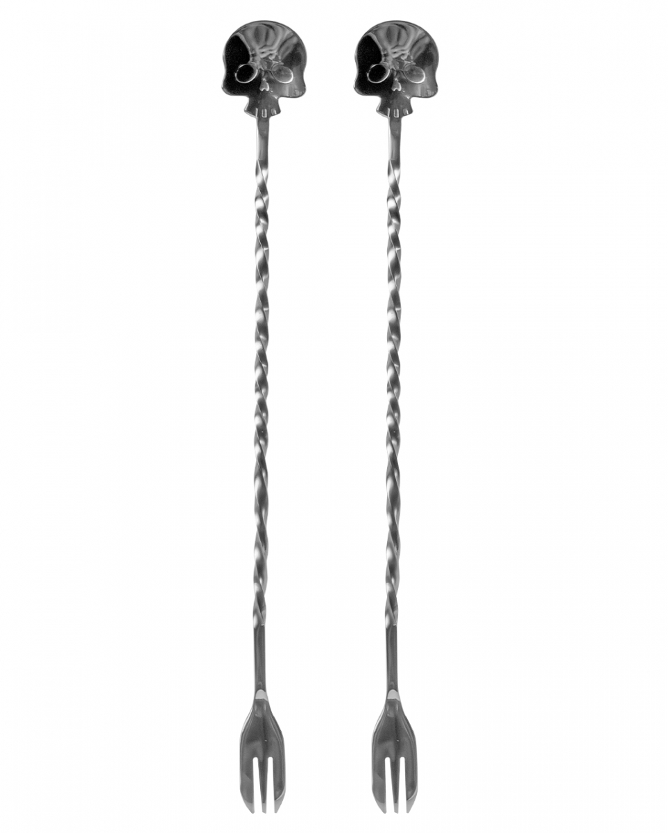 Cocktail Löffel und Gabel mit Totenkopf Motiv 2 St. Besteck aus Edelstahl mit Totenschädel Motiv Bereite dich darauf vor, deinen Cocktail mit einer Prise Finsternis zu würzen. Mit dem Totenkopf Cocktail Löffel und Gabel für Halloween und Goths wirst du auf deiner Party eine unheimliche Atmosphäre schaffen. Tauche den Totenschädel-Löffel in dein Getränk und rühre langsam um, während die Gabelzinken das perfekte Stück Garnitur aufspießen. Das Totenkopf Cocktail Löffel und Gabel für Halloween und Goths Set besteht aus 430 Edelstahl, der sowohl langlebig als auch rostbeständig ist. Im Lieferumfang enthalten sind 2 Stück, die man sowohl als Löffel als auch als Gabel nutzen kann. Lieferumfang: 1 x Cocktail Löffel und Gabel mit Totenkopf Motiv 2 St. Inhalt: 2 Stück Farbe: Silber Größe: ca. 25 x 2,5 cm Material: 430 Edelstahl Edelstahl Besteck mit Totenschädel Cocktail Besteck für Halloween und Gothics Dekoriere deinen Cocktail mit düsterem Stil Geniale Gothic und Halloween Homeware