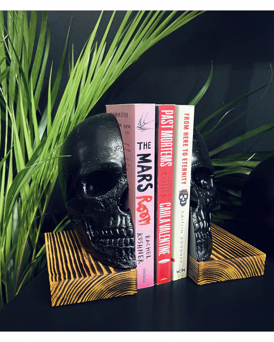 Gothic Buchstützen mit Totenkopf und Holzsockel Totenkopf Wohndeko fürs Bücherregal Wer gerne und viel liest, hat viele Bücher im Regal stehen. Um diese an Ort und Stelle zu halten, lohnen sich unsere Gothic Buchstützen mit Totenkopf und Holzsockel – ein mystischer Blickfang für jeden Horror Fan! Die Gothic Buchstützen mit Totenkopf und Holzsockel verhindern, dass deine Bücher im Regal umfallen. Der goldschwarze Sockel ist ein schöner Kontrast zum schwarz lackierten Schädel. Lieferumfang: 1 x Gothic Buchstützen mit Totenkopf und Holzsockel Farbe: Schwarz, Gold Größe: ca. 14 x 18 x 13 cm Material: Kunstharz, Holz Halbierter schwarzer Schädel auf Sockel Holzsockel in schwarz-goldener Marmoroptik Gothic Deko für dein Bücherregal Geschenkidee für Bücherwürmer Handgefertigte Gothic-Buchstützen Der Artikel ist ein Dekoartikel. Nicht für Kinder unter 3 Jahren geeignet. Kann Kleinteile enthalten, die verschluckt werden können – Erstickungsgefahr. Von Feuer und offenen Flammen fernhalten.