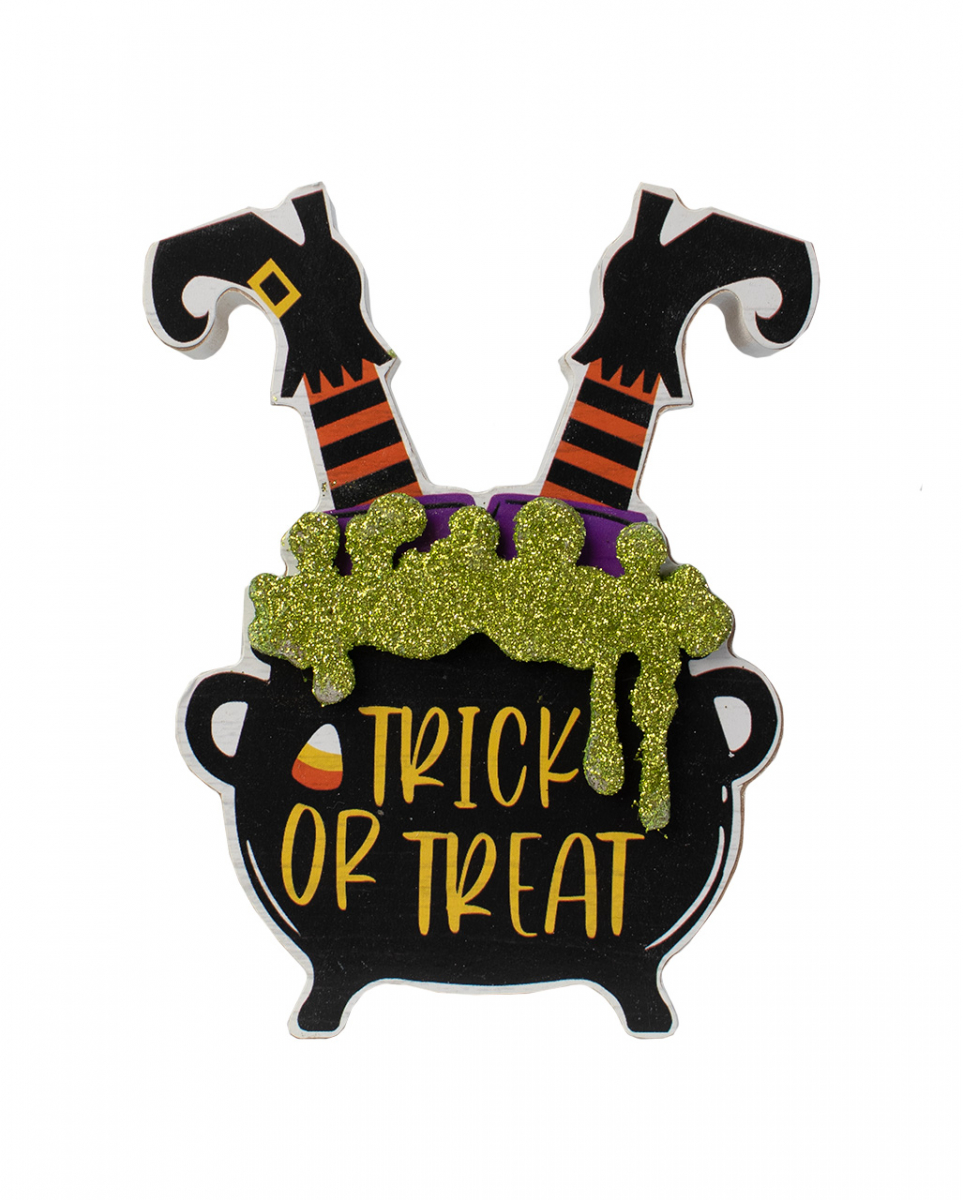 Trick or Treat Hexenkessel Holz Block Aufsteller 12cm Halloween Deko im schicken Farmhouse Look für Kaminsims und Tisch Der Trick or Treat Hexenkessel Holz Block Aufsteller würde zur nächsten Halloween Party gerne bei dir einziehen. Dekoriere den Hexenkessel mit Hexenbeinen einfach auf dem Tisch, dem Kaminsims oder auf die Fensterbank – du wirst dich jedes Jahr wieder an ihm erfreuen. Unser Trick or Treat Hexenkessel Holz Block Aufsteller im Vintage Design ist ca. 12 cm hoch und aus natürlichem Holz-Material gefertigt. Die Rückseite des Hexenkessels ist unbedruckt. Lieferumfang: 1 x Trick or Treat Hexenkessel Holz Block Aufsteller 12cm Farbe: Schwarz, Weiß, Grün, Gelb, Orange, Lila Größe: ca. 12 cm Material: Holz Halloween Aufsteller im Blockformat Natürliche Materialien, ohne Kunststoff Halloween Deko im schicken Landhaus Stil Rückseite unbedruckt