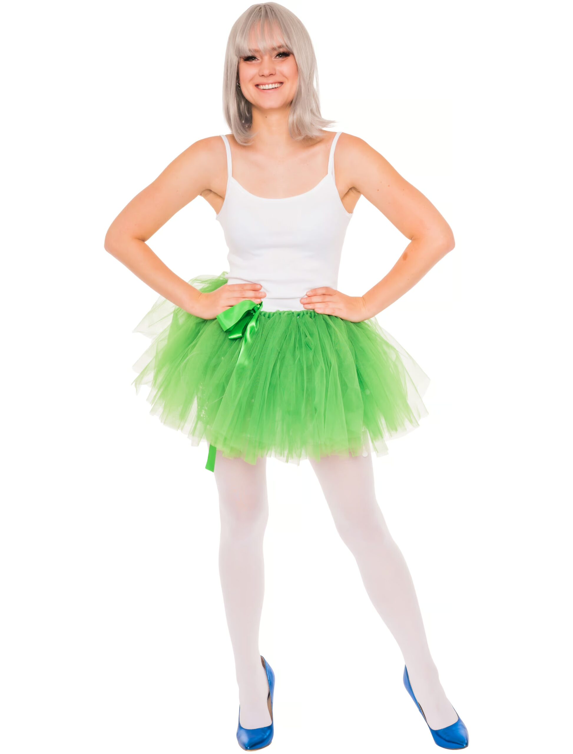 Dir fehlt noch das gewisse Extra für Dein Motto- und Karnevalskostüm? Dann solltest Du diese süße Tüllschleppe mit Rock mal genauer anschauen. Der Rock in auffälligem Grün ist 30 cm lang. Beide Teile zusammen setzen schöne Beine sensationell gut in Szene. Das Highlight dieses außergewöhnlichen Rocks mit Tüllschleppe sind die bunt blinkenden LED-Lichter. Die Batterien verstecken sich unauffällig in einem kleinen Fach. Pflegeleichtes Polyester sorgt dafür, dass diese Tüllschleppe alles mitmacht.