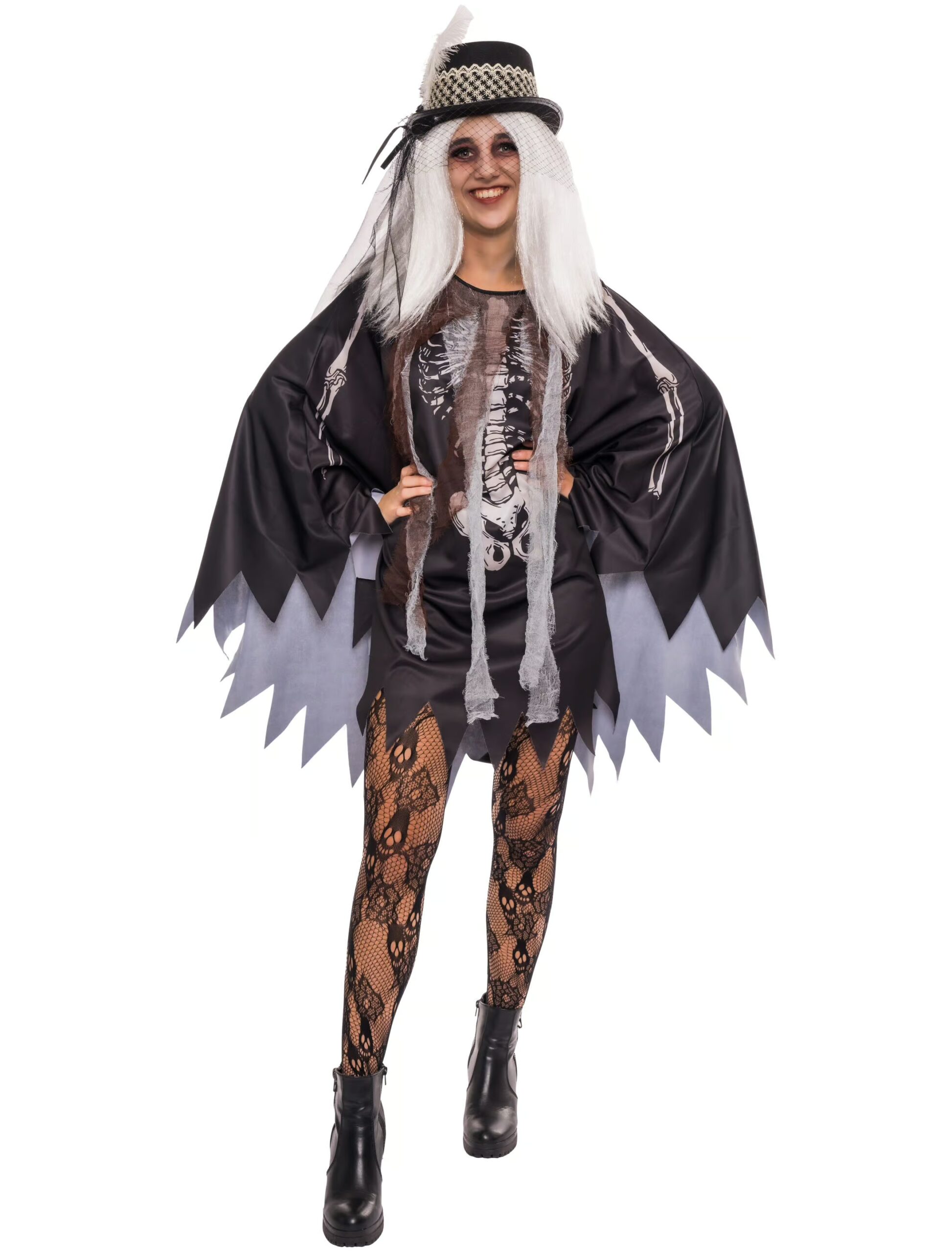 Überwurf Skelett schwarz one size, ideal für Karneval & Fasching
