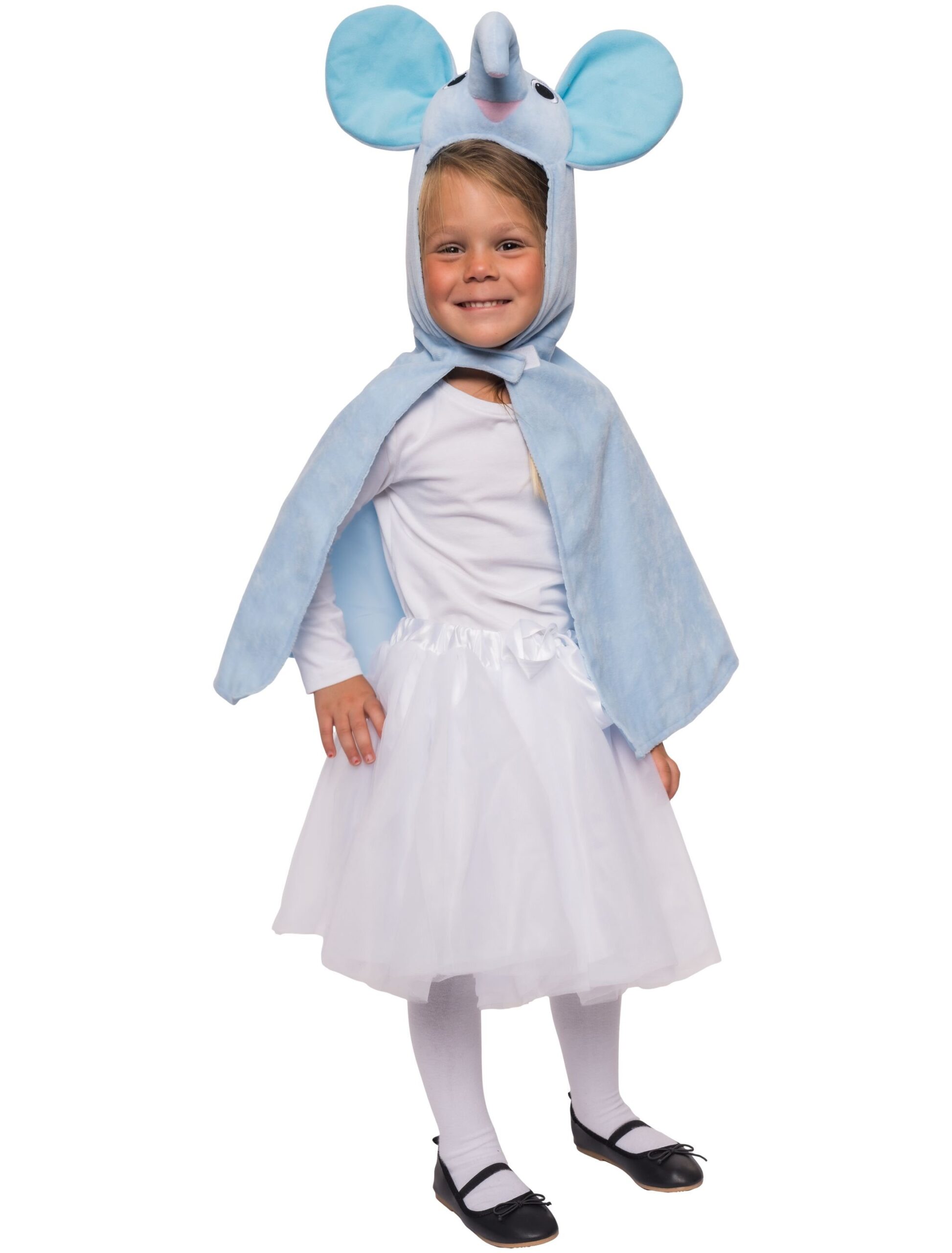 Umhang Plüsch Elefant hellblau 1-3 Jahre, ideal für Karneval & Fasching