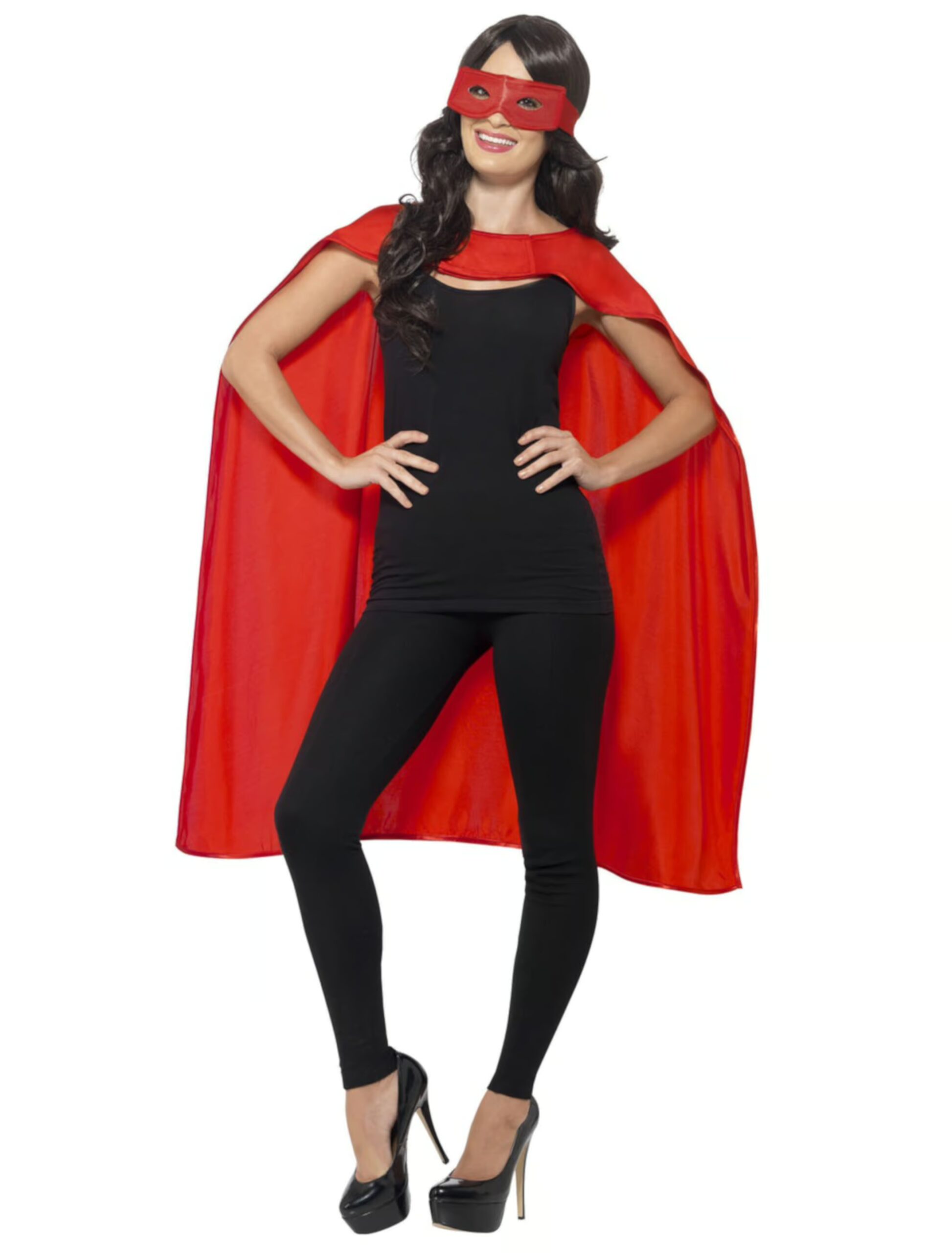 Dieses zweiteilige rote Umhang Set aus Polyester in Einheitsgröße, ist eine attraktive Ergänzung zu allerlei Faschings- und HalloweenKostümen. Es besteht aus einem relativ schlichten roten Umhang mit praktischem Klettverschluss und einer ebenfalls roten Augenmaske. Sowohl ein Teufel, der seinem Mitmenschen übel mitspielt als auch ein starker und geheimnisvoller Superheld, der Katzenkinder von Bäumen rettet und junge Mädchen aus den Händen von bösen Buben befreit, können dieses vielseitig verwendbare Set tragen. Weitere typische Accessoires zu den Kostümen sind in unserem Shop erhältlich.