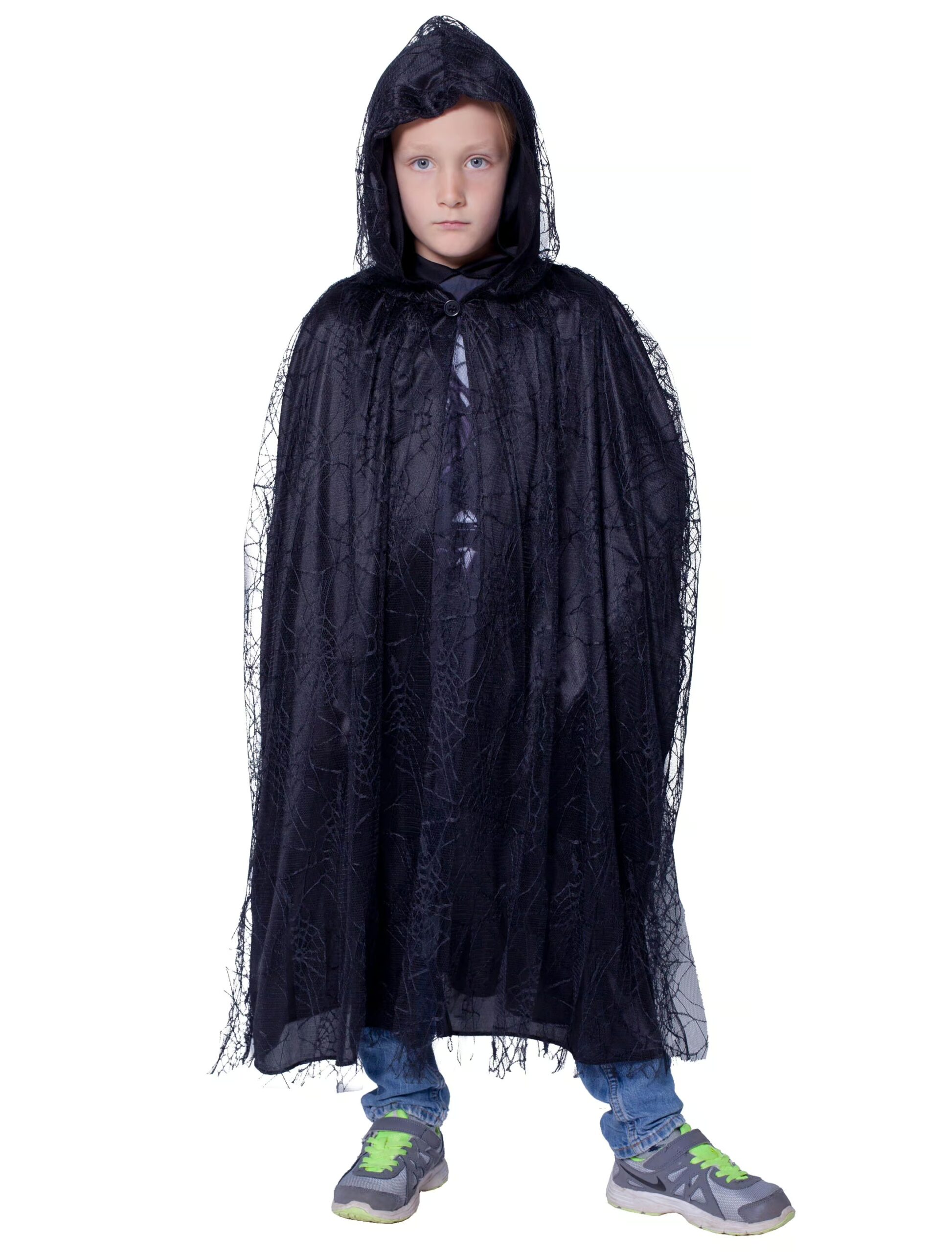 Umhang Spinnenweben mit Tüll Kinder schwarz one size