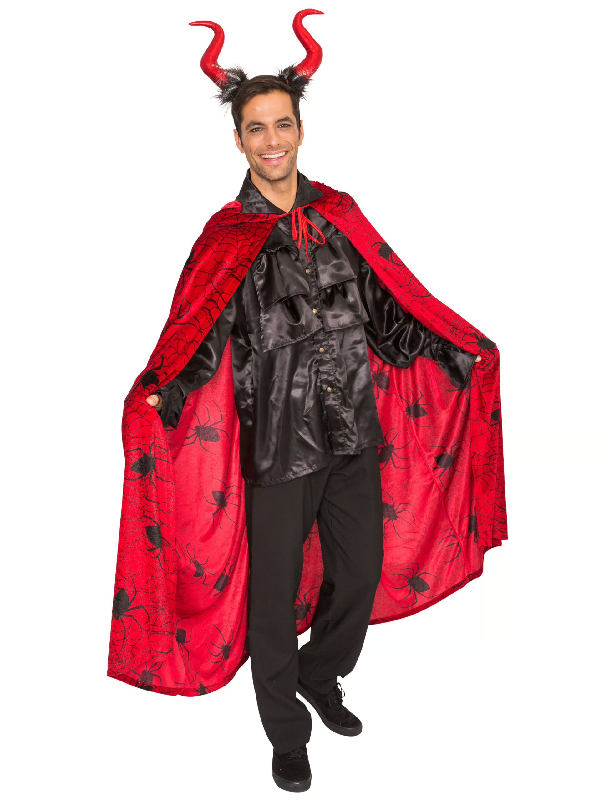 Du bist zu einer Halloweenparty eingeladen und suchst noch den letzten Schliff für Deine schaurige Verkleidung? Gar kein Problem! Unser Umhang Spinnweben mit Kapuze in Rot darf hier nicht fehlen. Am Cape befinden sich am Hals Schnüre zum Zubinden und wird mit einem Spinnen-Muster geschmückt. Ein schön gruseliges Kostümteil für die nächste Halloweenparty. Der Umhang ist aus 100% Polyester gefertigt. Das Produkt beinhaltet nur einen Umhang.