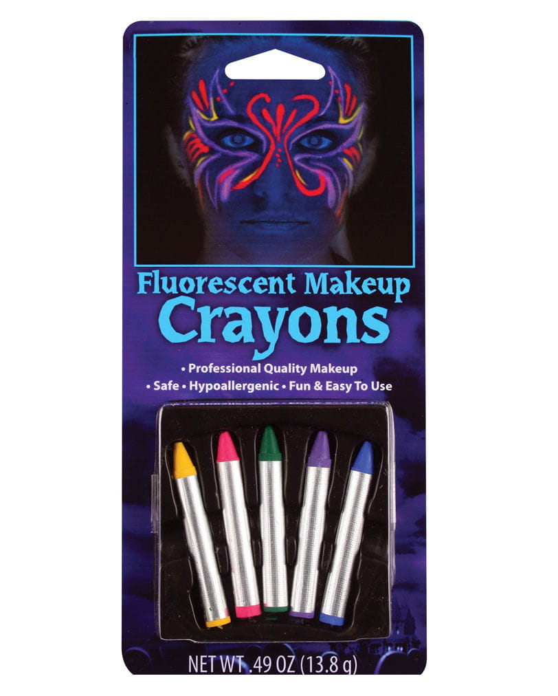 Fluoreszierende UV Schminkstifte 5er Set Schwarzlichtaktive Make-up Stifte für Bodypainting, Fasching und Halloween Schminke dich jetzt mit dem UV Schminkstift Set und lasse dein Make-up im Schwarzlicht leuchten. Neonleuchtende UV Schminkstifte für Bodypainting Fasching und Halloween. Das UV Schminkstifte Set enthält jeweils einen neonleuchtenden gelben, pinken, grünen, violetten und blauen UV Schminkstift. Die fluoreszierende UV Schminkstifte lassen sich leicht mit warmem Wasser und Seife wieder entfernen. Lieferumfang: 1 x UV Schminkstift Set Inhalt: 5 UV Schminkstifte Make-Up leuchtet unter UV-Licht lässt sich leicht mit Wasser und Seife entfernen