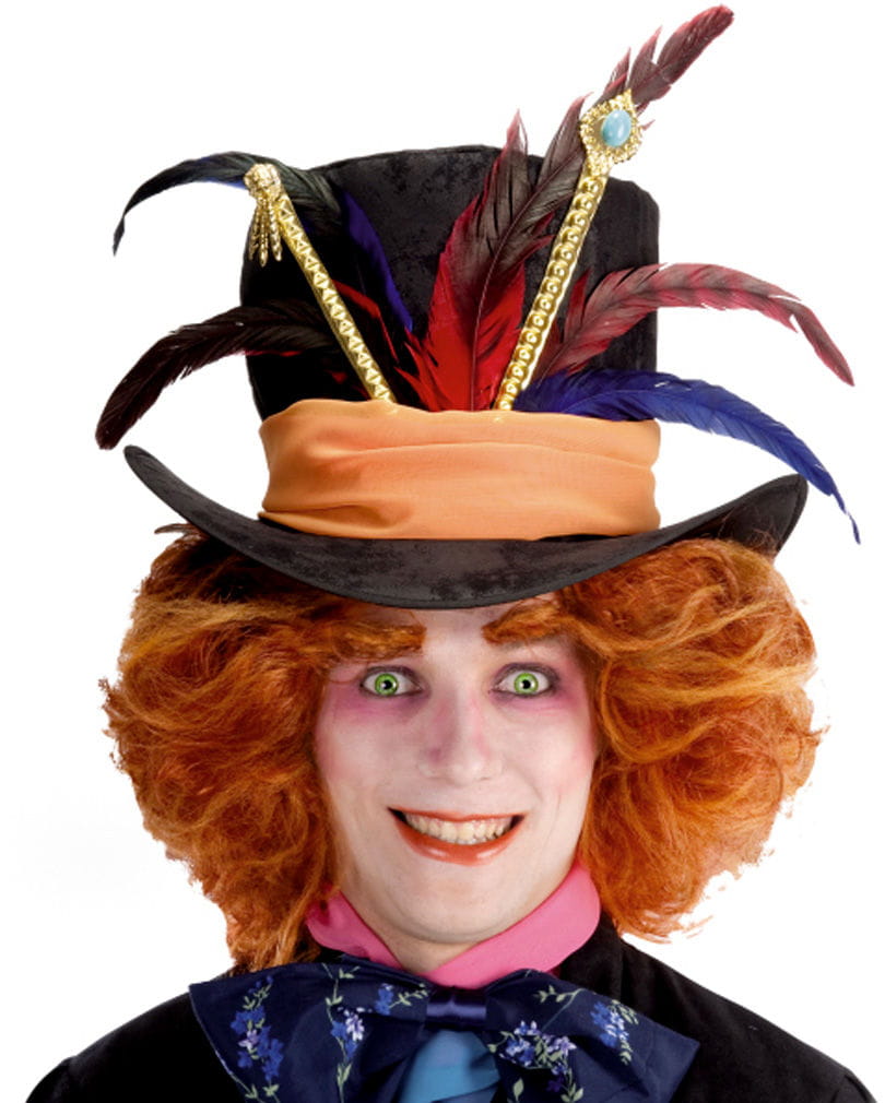 Hutmacher Hut Werde mit dem Hut des Hutmachers zum liebevollen Kauz Der liebenswerte Helfer von Alice im Kampf gegen die Böse Königin zeichnet sich vor allen durch seine verschobene Art aus. Dieser Hut mit bunten Federn und Accessoires lässt dich garantiert zum Paradiesvogel werden und zieht mit Sicherheit die Blicke auf dich. Kehre auch du deine tief versteckte, verrückte Seite ans Tageslicht und werde mit dem Hutmacher Hut zum Held des Wunderlandes.