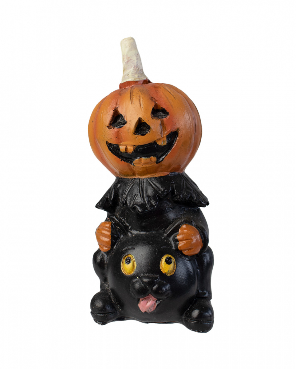 Vintage Kürbisfigur mit Katzenkopf Halloween Tischdeko und Geschenkfigur im Kürbismann Look Lass dich von diesem charmanten Pumpkin-Geist und seinem Freund um den Finger wickeln. Die Vintage Kürbisfigur mit Katzenkopf ist eine kinderfreundliche Halloween Deko, die jeden Tisch verschönert. Unser Vintage Kürbisgeist mit Katzenkopf ist eine 8 cm große Dekofigur aus Kunststein. Dieses lustige Kürbis Männlein ist farbenfroh designt und kann beliebig platziert werden. Lieferumfang: 1 x Vintage Kürbisgeist mit Katzenkopf 8 cm Farbe: Schwarz, Orange, Beige Größe: 4 x 4 x 8 Material: Polyresin Kürbis Männlein Spooky Deko-Figur Geschenk für Kinder-Halloween Der Artikel ist ein Dekoartikel für Erwachsene und kein Spielzeug. Nicht für Kinder unter 3 Jahren geeignet. Kann Kleinteile enthalten, die verschluckt werden können – Erstickungsgefahr. Von Feuer und offenen Flammen fernhalten.