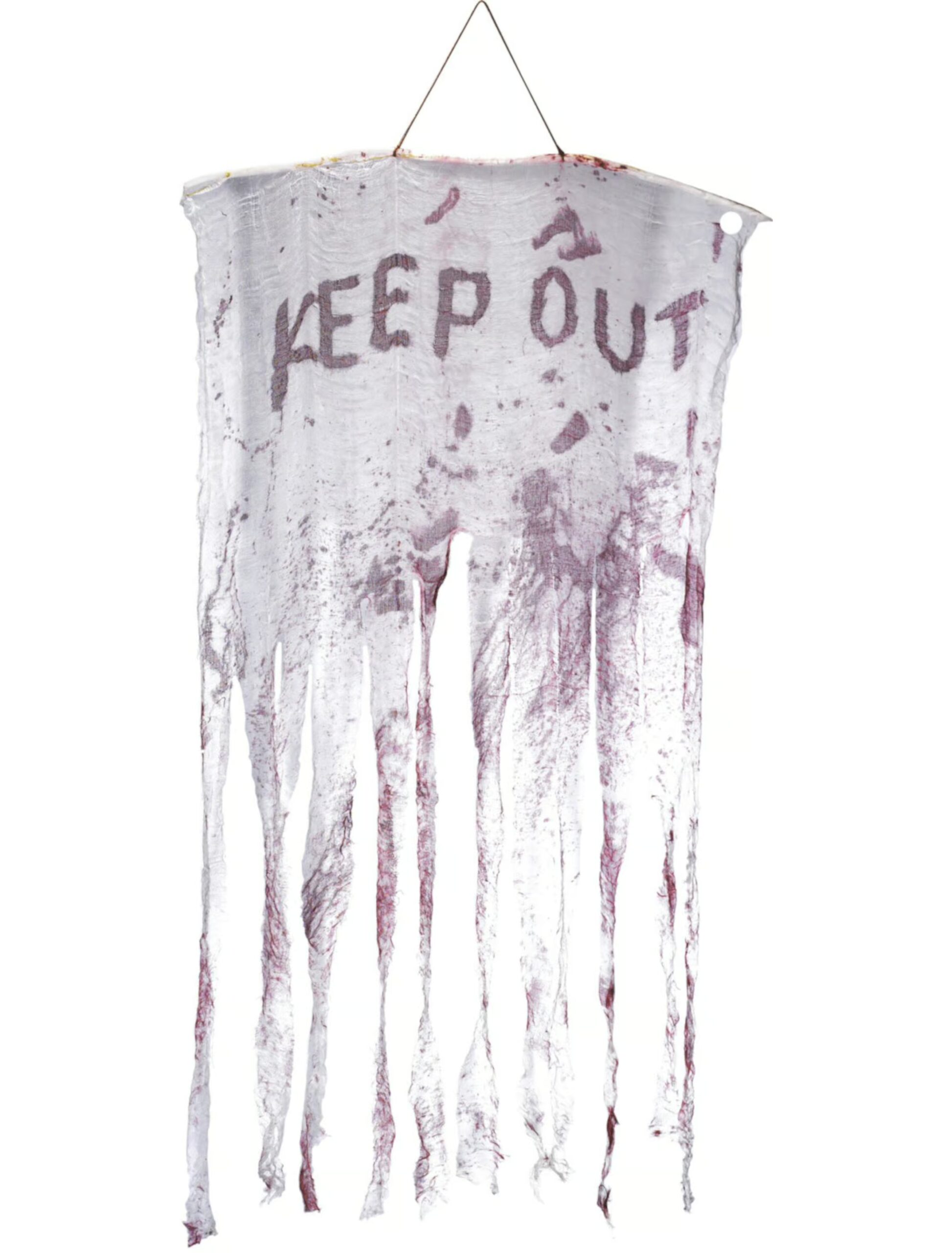 Dieses weiß-rote Banner ist die passende Wanddeko für Deine Halloween-Party. Ebenso kann es von einem rebellischen Teenager dazu verwendet werden, seine Mitmenschen davon abzuhalten, sein Reich zu betreten. Die blutige Schrift Draußen bleiben ist dabei mehr als deutlich. Das Banner ist 150 x 90 cm groß.