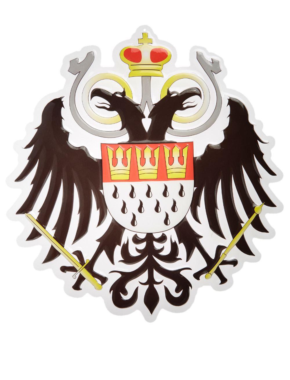In der schicken Farbkombination von Schwarz, Silber, Gold und Rot kannst Du Dir jetzt die Köln-Wanddeko mit dem Adler für Dein Zuhause bestellen. Beweise Traditionsbewusstsein und Heimatverbundenheit mit einem Motiv, was garantiert nicht nur zur Zeit des Kölner Karnevals in Deinem Heim etwas hermacht! Mit den Maßen 46 x 46 cm hat die Wanddeko die perfekte Größe, um an einer Deiner Wände zu einem echten Blickfang zu werden. Hol Dir ein Stückchen Köln nach Hause – mit der Wanddeko des Kölner Adlers.