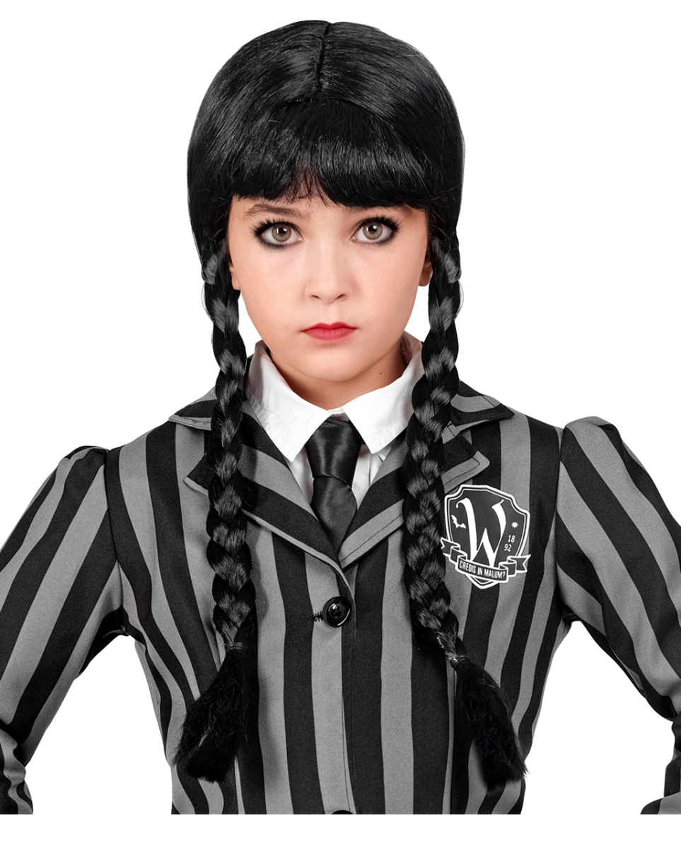 Wednesday Kinderperücke mit Pony und Zöpfen für Halloween und Fasching Schwarze Gothic Girl Perücke als perfektes Accessoire für deine Verkleidung als Wednesday Addams Möchtest du wie Wednesday Addams aussehen? Dann ist die Wednesday Kinderperücke mit Pony und Zöpfen genau das Richtige! Mit der hochwertigen Perücke bringst du deine morbide Persönlichkeit zum Ausdruck und wirst der Star der Halloween- oder Faschingsparty. Die Wednesday Kinderperücke mit Pony und Zöpfen ist aus 100% Kunsthaar mit flexiblem Netz, was für eine tolle Passform und einen natürlichen Look sorgt. Die Größe ist speziell für Kinder. Das schwarze Kunsthaar verleiht dir einen geheimnisvollen Charme. Lieferumfang: 1 x Wednesday Kinderperücke mit Pony und Zöpfen Farbe: Schwarz Größe: Kinderperücke Material: 100% Kunsthaar Schwarze, hochwertige Kinderperücke mit Zöpfen und Pony Freche Gothic Girl Perücke für Halloween und Fasching Fantastische Passform in Movie Star Qualität Der Artikel ist ein Kostümzubehör und kein Spielzeug. Nicht für Kinder unter 3 Jahren geeignet. Kann Kleinteile enthalten, die verschluckt werden können – Erstickungsgefahr. Von Feuer und offenen Flammen fernhalten.