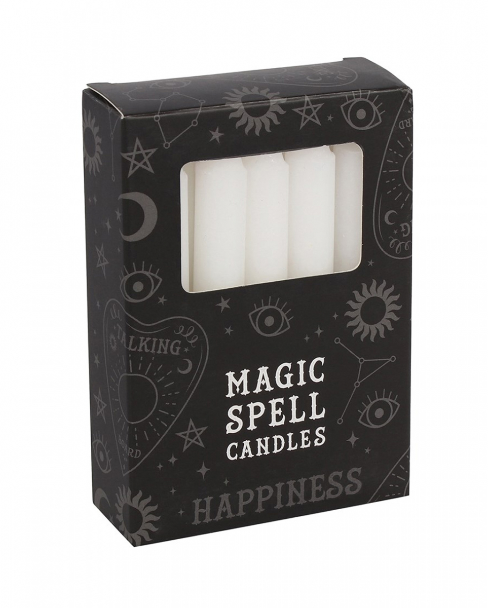 Weiße Zauberkerzen zum ",Glücklichsein", 12 Stück für magische Rituale Führe mit den Hexenkerzen okkulte Riten durch und schaffe eine mystische Atmosphäre Die weißen Zauberkerzen zum ",Glücklichsein", helfen dir beim Kerzenzauber für Glück, Neuanfang und spirituelles Wachstum. Schließlich ist der Kerzenzauber eine der einfachsten Formen des Zauberns. Auch Anfänger helfen ihrem Glück damit auf die Sprünge. Benutze dazu unsere Weiße Zauberkerzen zum ",Glücklichsein",. Sie helfen dir als magische Hexenkerzen. Schreibe deinen Wunsch auf ein Blatt und verbrenne es in einer feuersicheren Schüssel. Mit den 12 Kerzen aus Paraffinwachs hast du das ideale Zubehör. Lieferumfang: 1 x Weiße Zauberkerzen zum ",Glücklichsein", 12 St. Inhalt: 12 Stück Farbe: Weiß Größe: ca. 10 x 7 x 2,5 cm Material: Paraffinwachs 12 Schwarze Kerzen für Zauberer und Hexen Perfekt für Halloween, Wicca und Pagan Fans Erwünschter Zauber: Glück Nicht für Kinder unter 3 Jahren geeignet. Kann Kleinteile enthalten, die verschluckt werden können – Erstickungsgefahr.