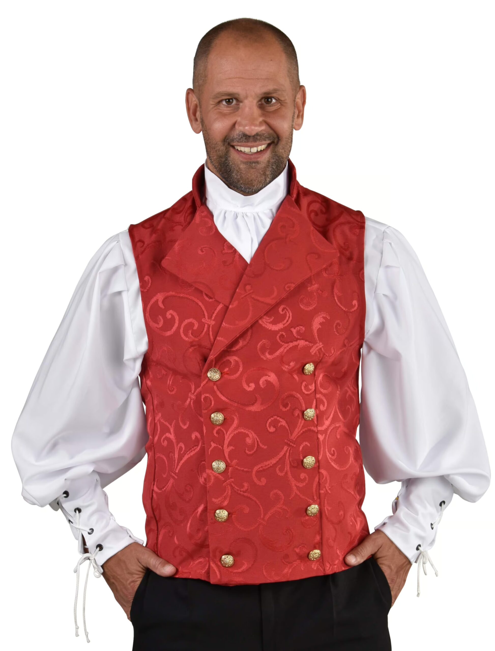 Egal ob zum Kostümball, zur Zeiten der drei Musketiere oder anderer gotischer Mottos, diese Weste kann fast zu allen Themen kombiniert werden und ist daher ein wirklicher Alleskönner. Die verspielte, rote Weste mit den goldenen Knöpfen verwandelt Dich in einen edlen und vornehmen Adel. Passend dazu findest Du dem Thema angemessene Hemden und Hosen in unserem Shop. Die rote Gothic Weste ist in unterschiedlichen Größen von XS bis XXL erhältlich.